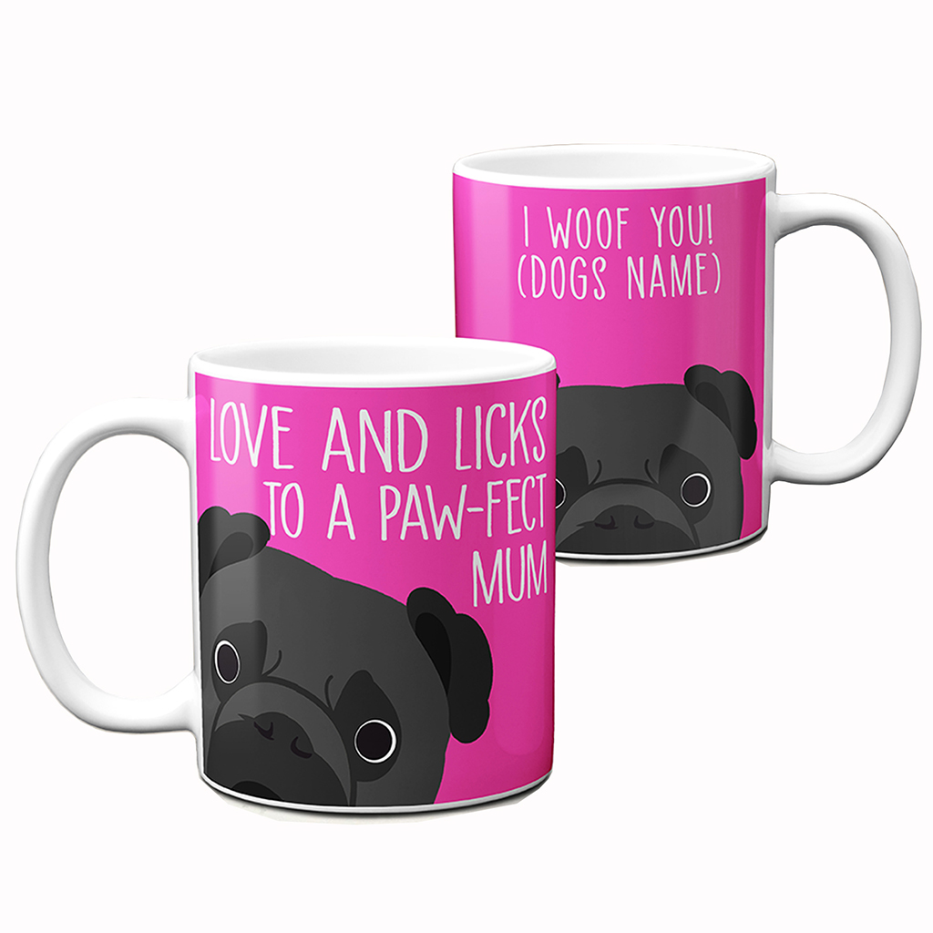 Personalised Funny Pug Dog Paw-fect Mum Dad Mug, the perfect dog lover gift!