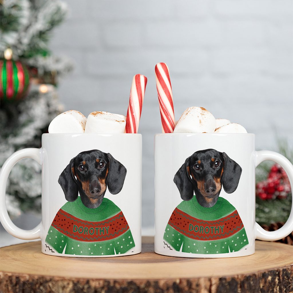 Personalised Dachshund Sausage Dog Christmas Jumper Mug DJM19