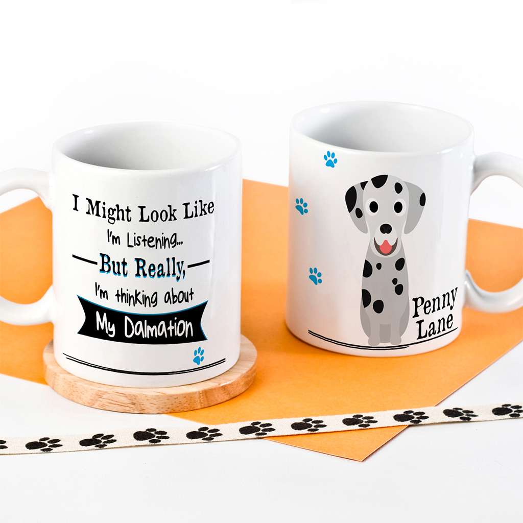 Personalised Funny I’m Thinking About My Dalmatian Dog Mug, the perfect dog lover gift!