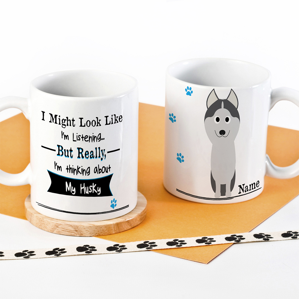 Personalised Funny I’m Thinking About My Husky Dog Mug, the perfect dog lover gift!