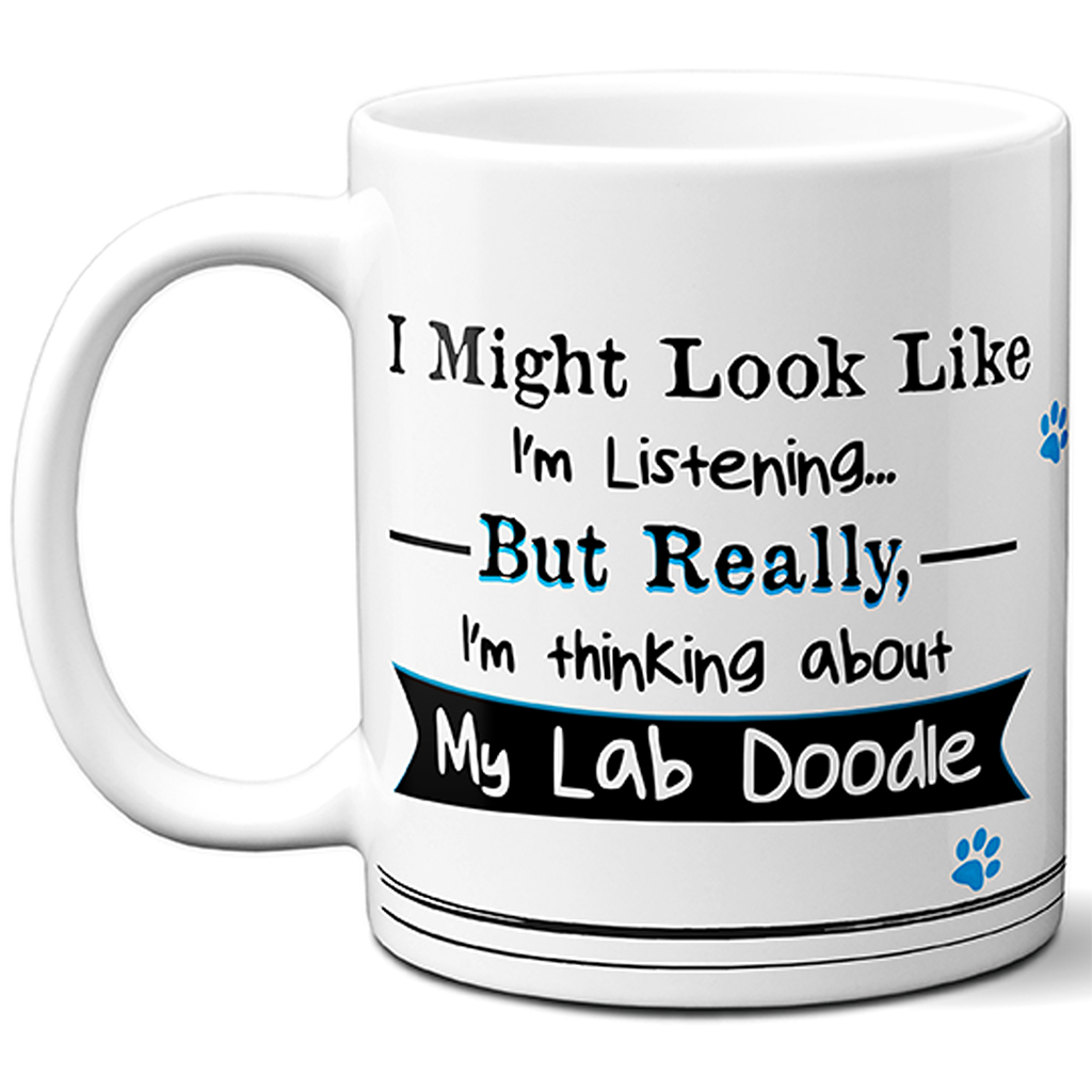 Personalised Funny I’m Thinking About My Lab Doodle Dog Mug, the perfect dog lover gift!