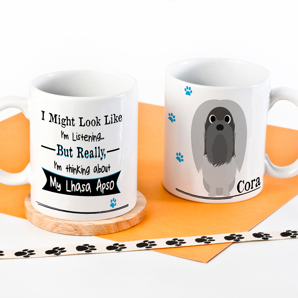Personalised Funny I’m Thinking About My Lhasa Apso Dog Mug, the perfect dog lover gift!