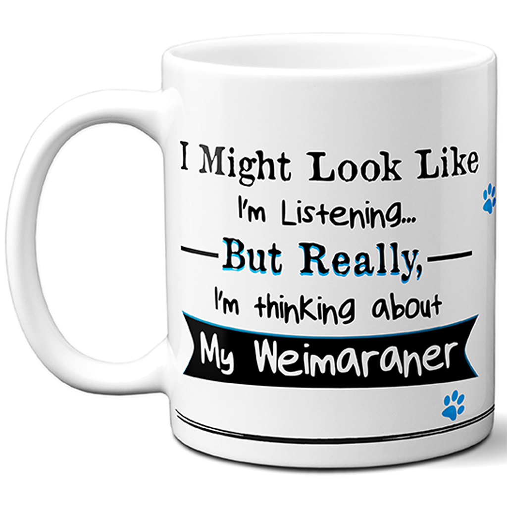 Personalised Funny I’m Thinking About My Weimaraner Dog Mug, the perfect dog lover gift!