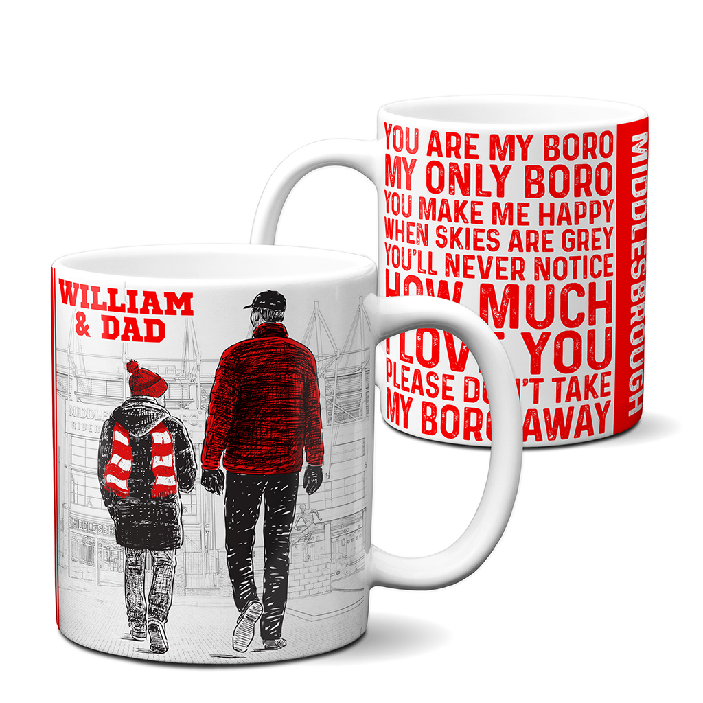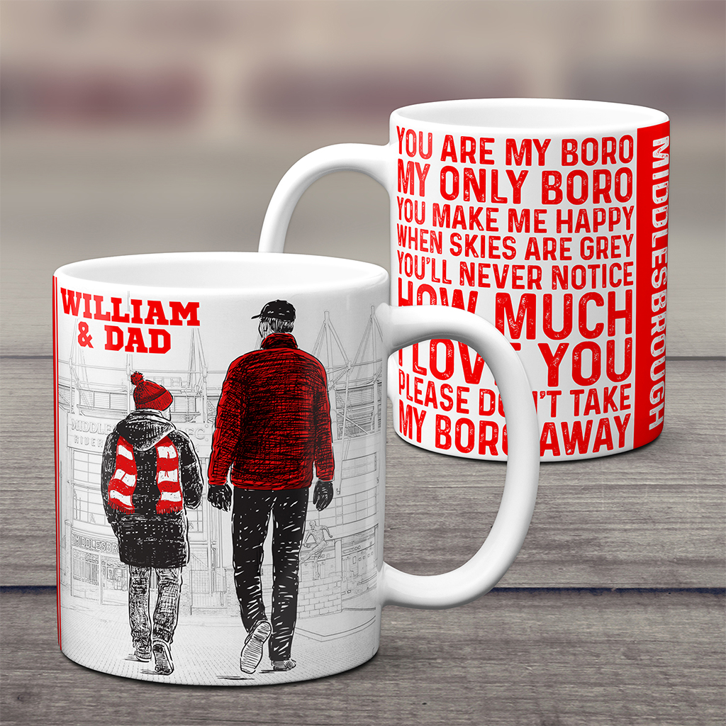 Personalised Middlesbrough Father and Son Football Mug, the Perfect Football Team Fan Gift!
