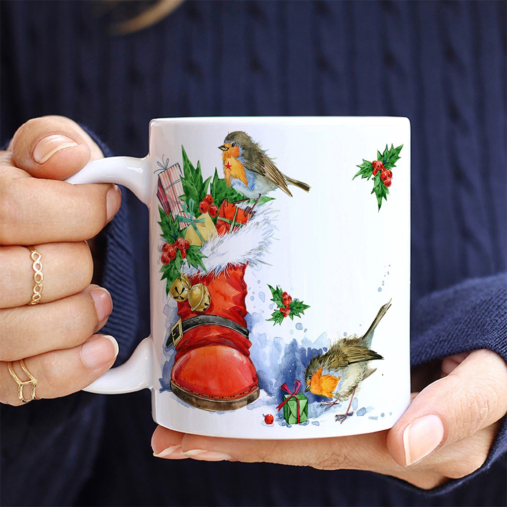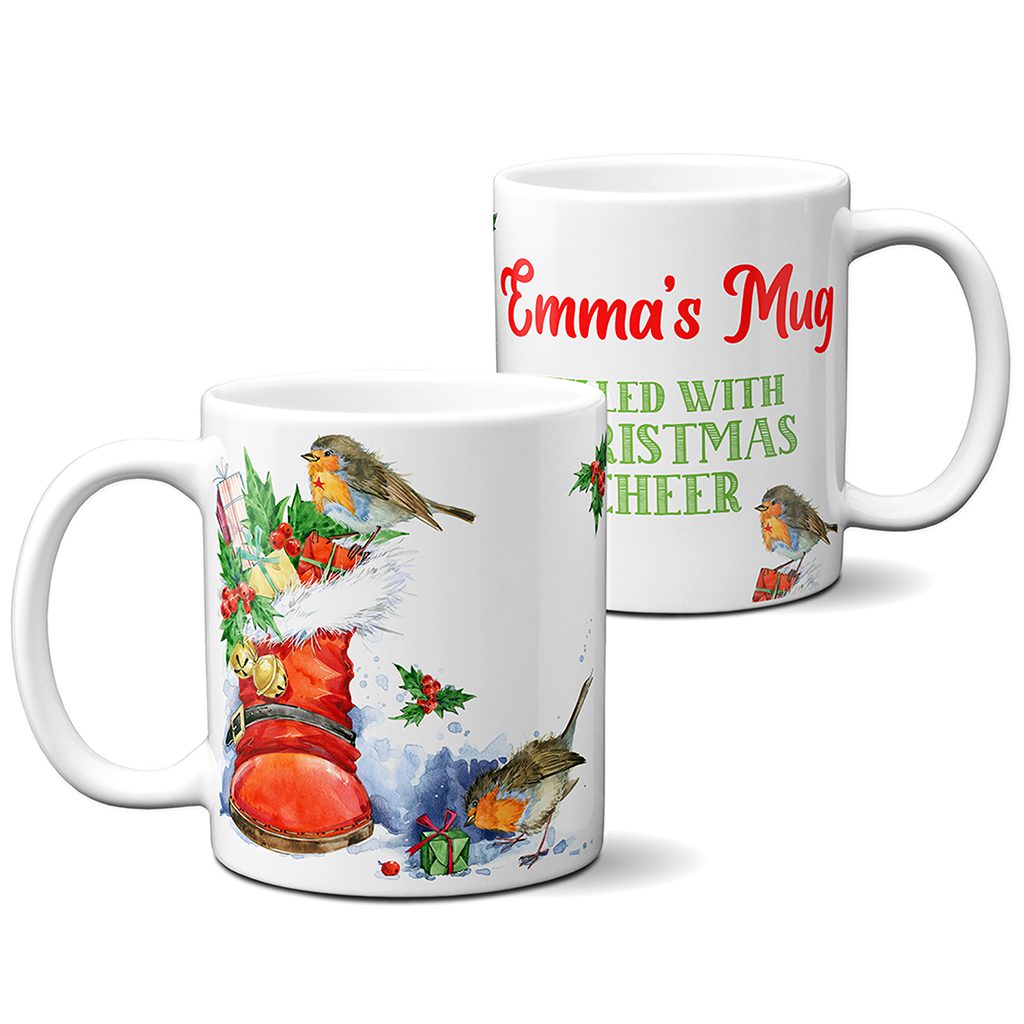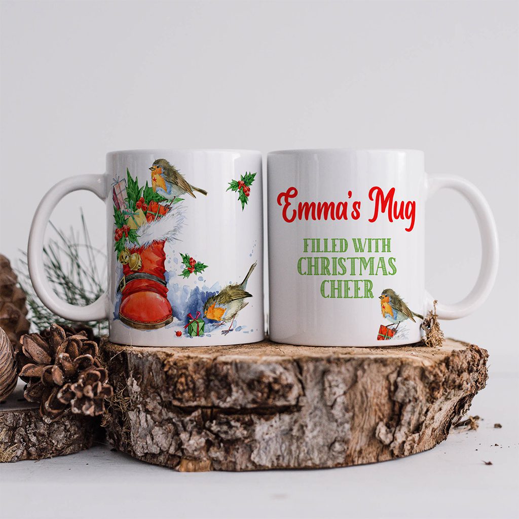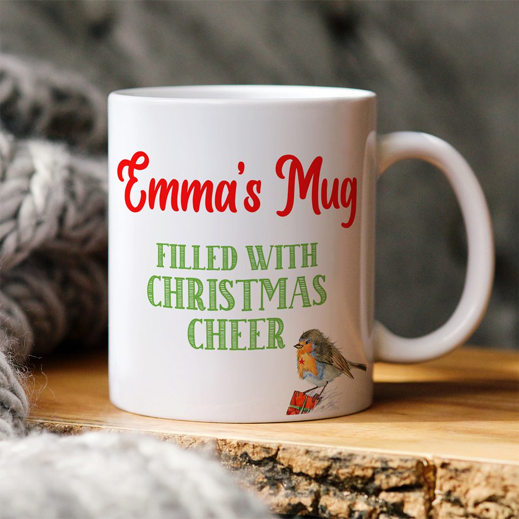 Personalised Robin Christmas Mug, the perfect festive present or stocking filler gift!