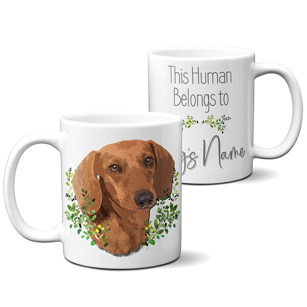Personalised Funny ‘This Human Belongs To’ Brown Dachshund Sausage Dog Mug, the perfect gift!