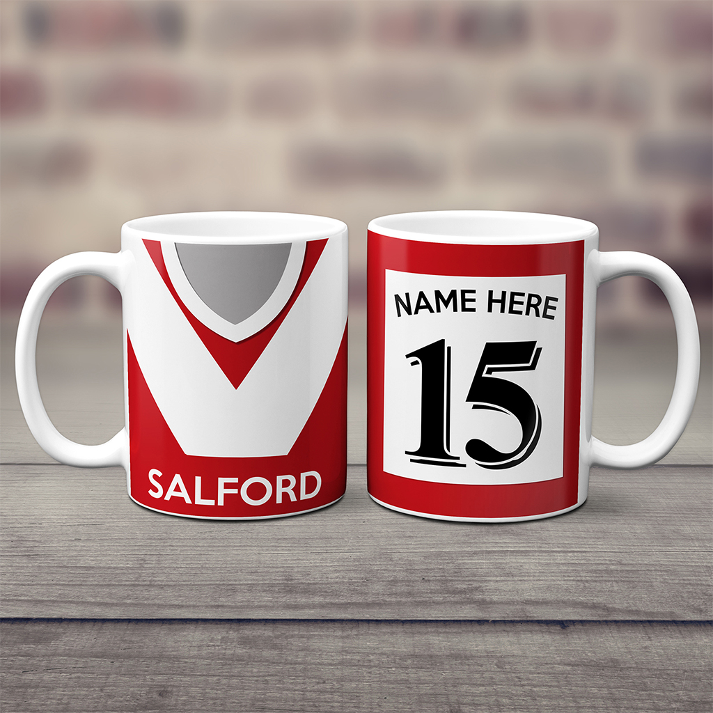 Personalised Salford Rugby League Mug, the Perfect Rugby Team Fan Gift!