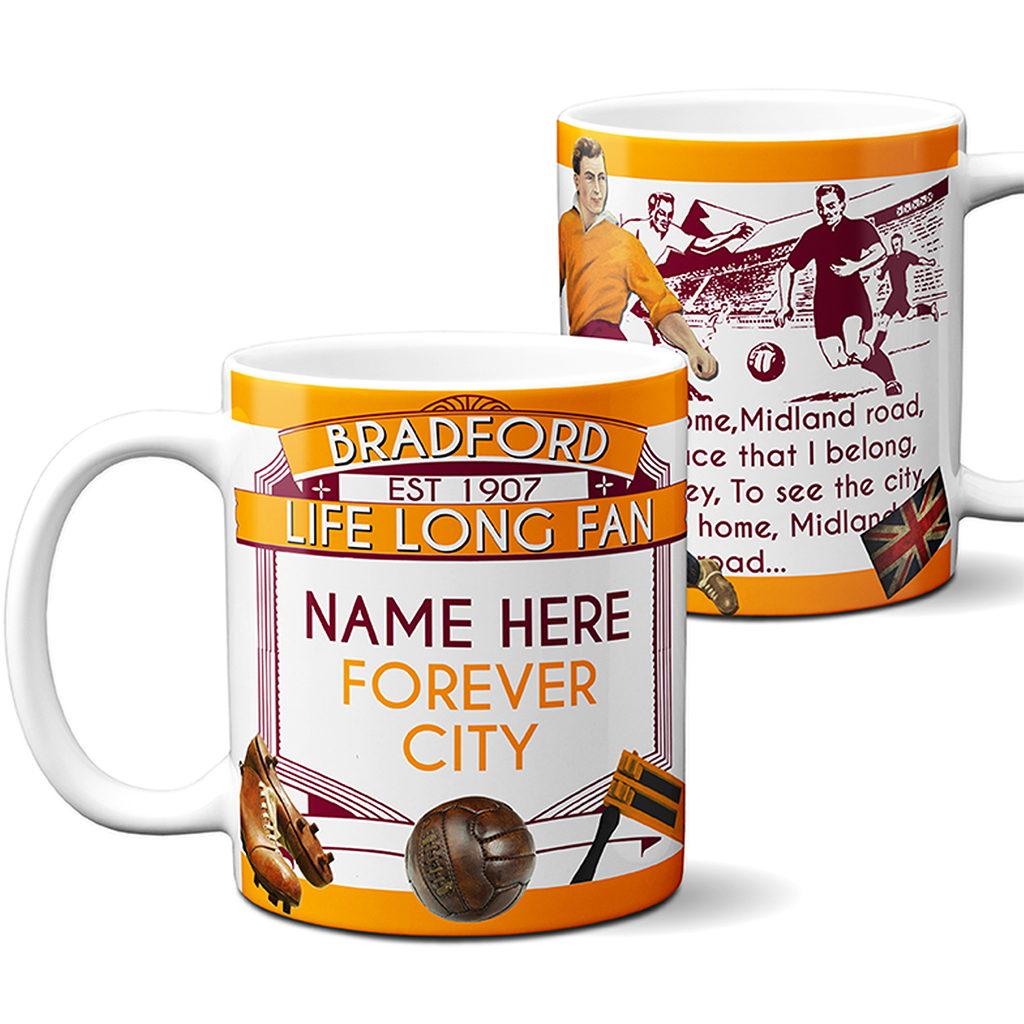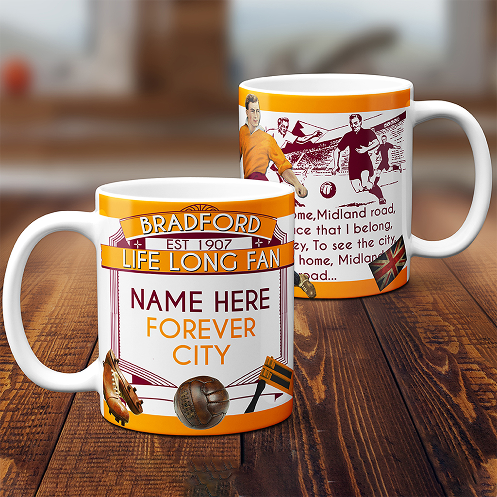 Personalised Bradford Football Mug, the Perfect Vintage Football Team Fan Gift!