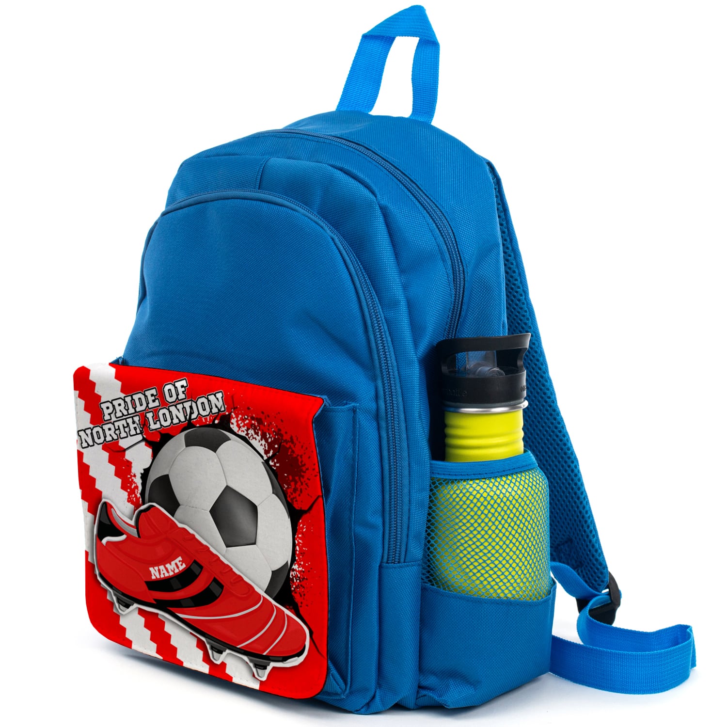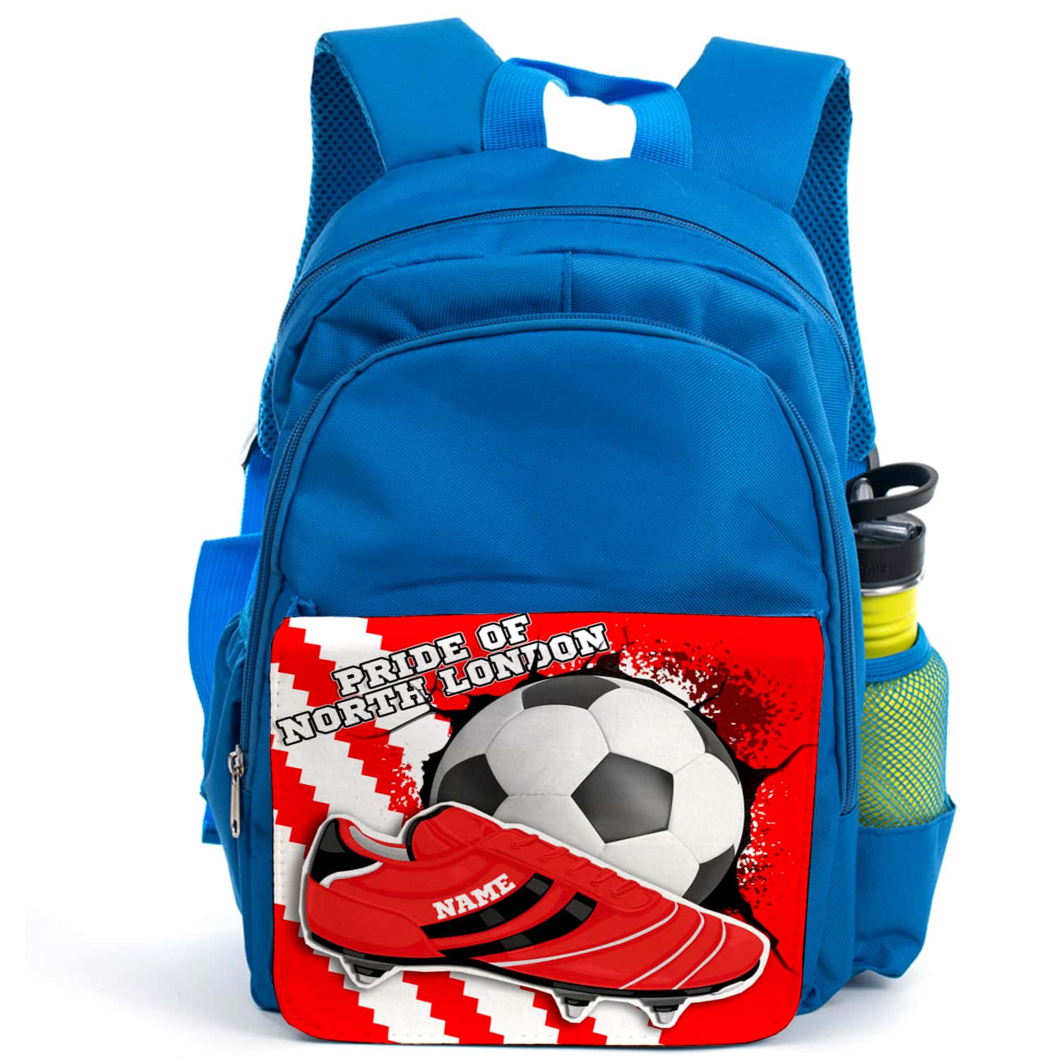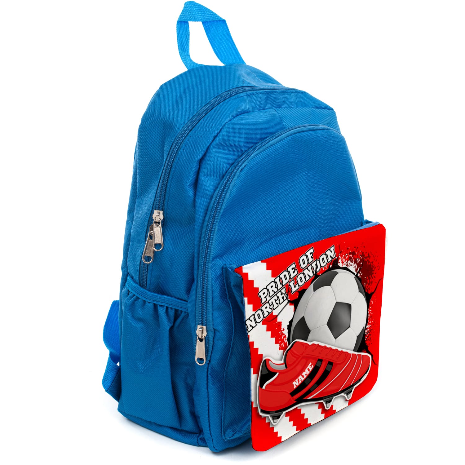 This Personalised Arsenal Kids Kids Football Blue Backpack is the perfect back to school gift for your child! Great as a kids’ school book bag and ideal for sports PE kits, days out and travel. Each rucksack is handmade for you and personalised with a name and player’s squad number. A unique and practical gift to get ready for term time. We have matching football team lunch bags and pencil cases too!