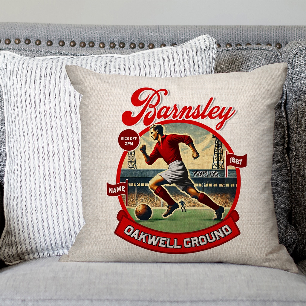 Personalised Barnsley Vintage Nostalgia Football Cushion Cover, the Perfect Vintage Football Team Fan Gift!