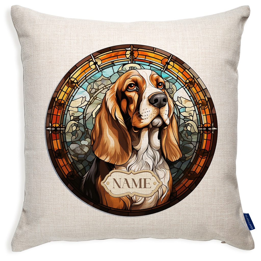 Personalised Basset Hound Dog Portrait Cushion Cover GDC06