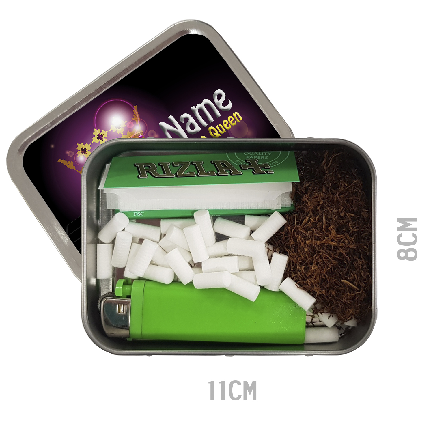 ★ Add the Name you’d like printed on the tin in the box provided.
