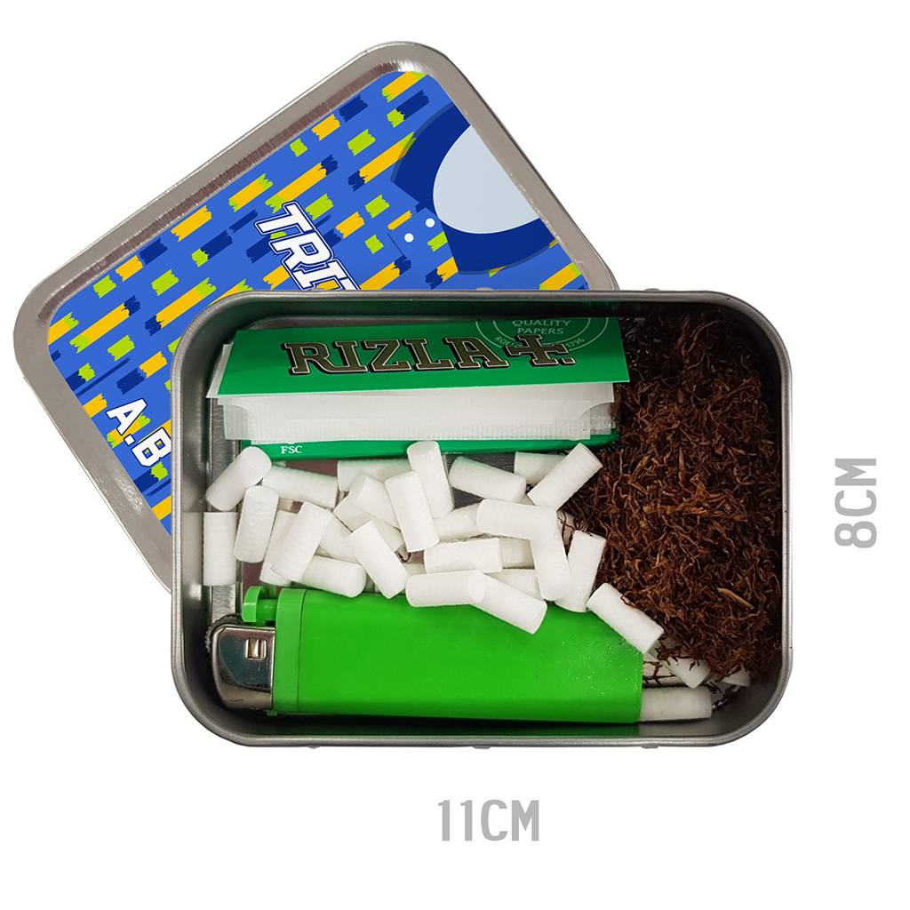 Keep ciggy papers, filters and loose baccy fresh in this custom retro casual football tin.