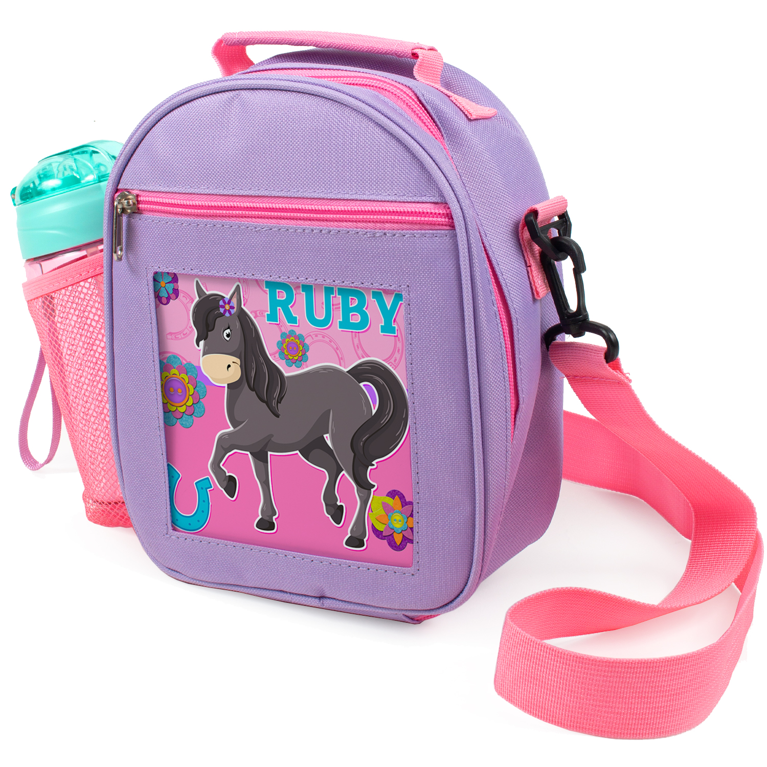 Personalised Black Horse Purple Kids Girls Pony School Lunch Bag KK51