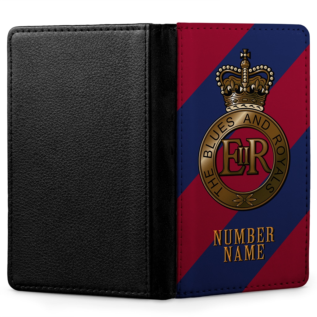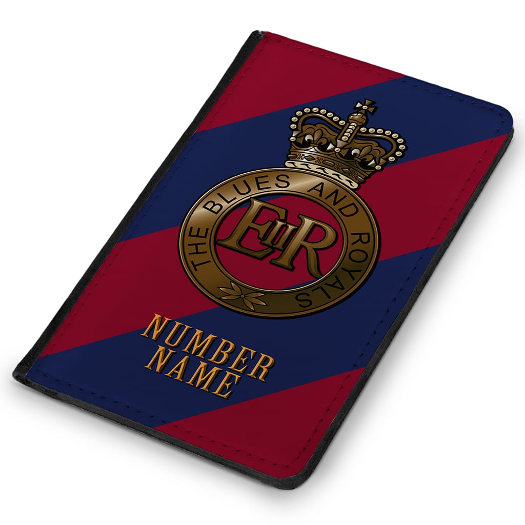This personalised Blues and Royals Military Passport Case with a classic regiment stripe and badge design is the perfect gift for Army Veterans and Serving Personnel. Each passport cover is handmade for you, custom personalised with a name, military rank and/or number. Each passport case also has two card slots and a larger slot for your boarding pass. Travel in style on your next trip and support the British Armed Forces.