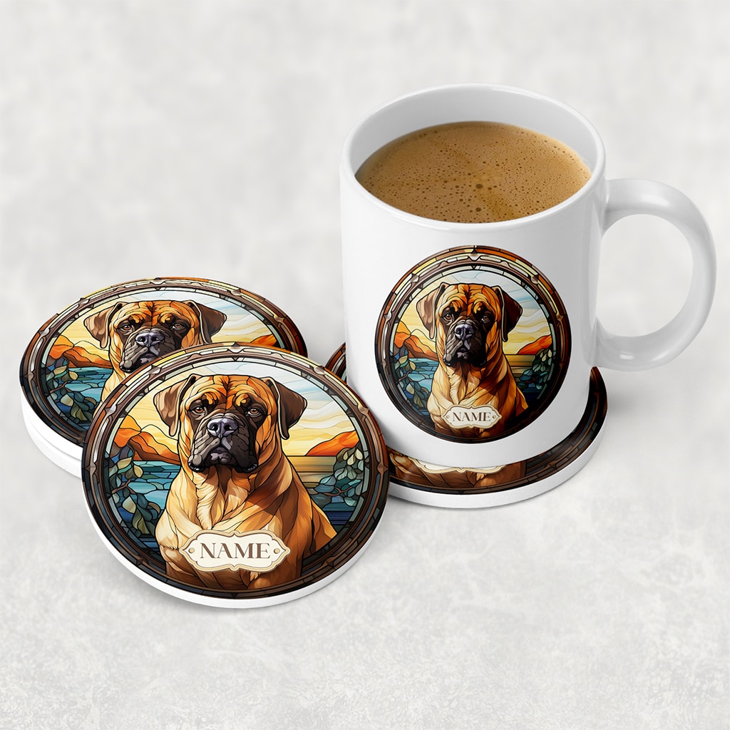 This Personalised Boerboel Dog Portrait Mug & Coaster Set is the perfect gift for dog owners and puppy lovers, custom personalised with your dog’s name.