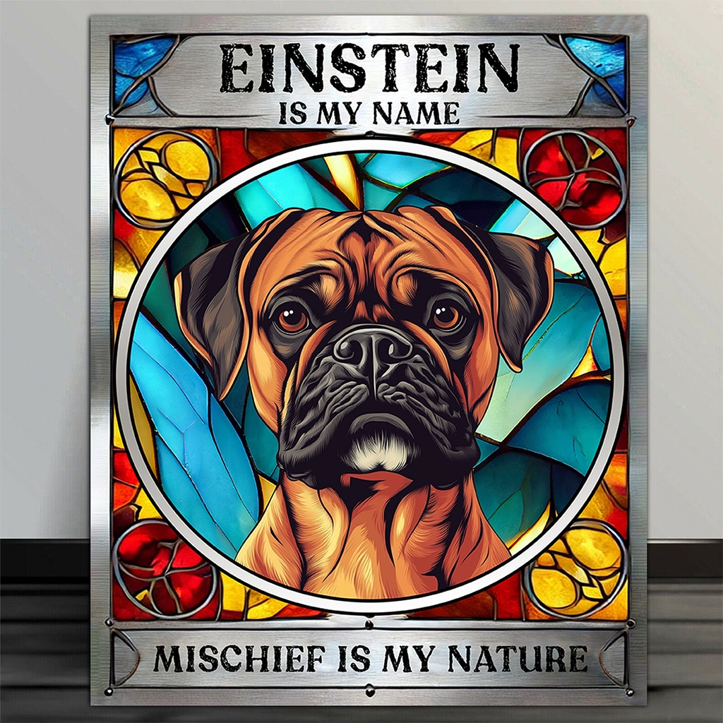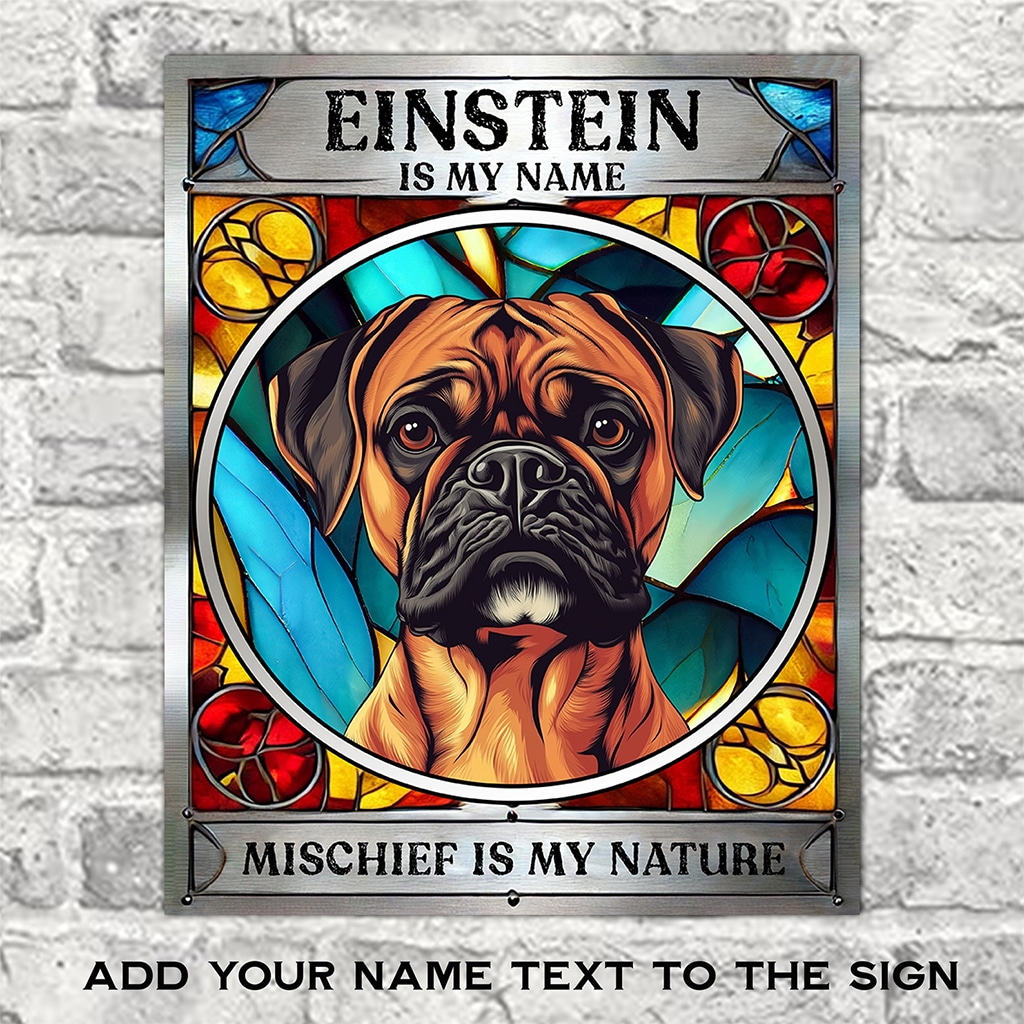 Personalised Boxer Dog Mischief Metal Sign DG05