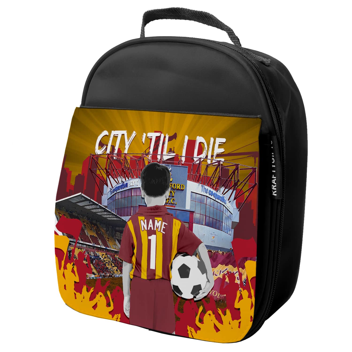 Personalised Bradford Kids Football School Lunch Bag CF09