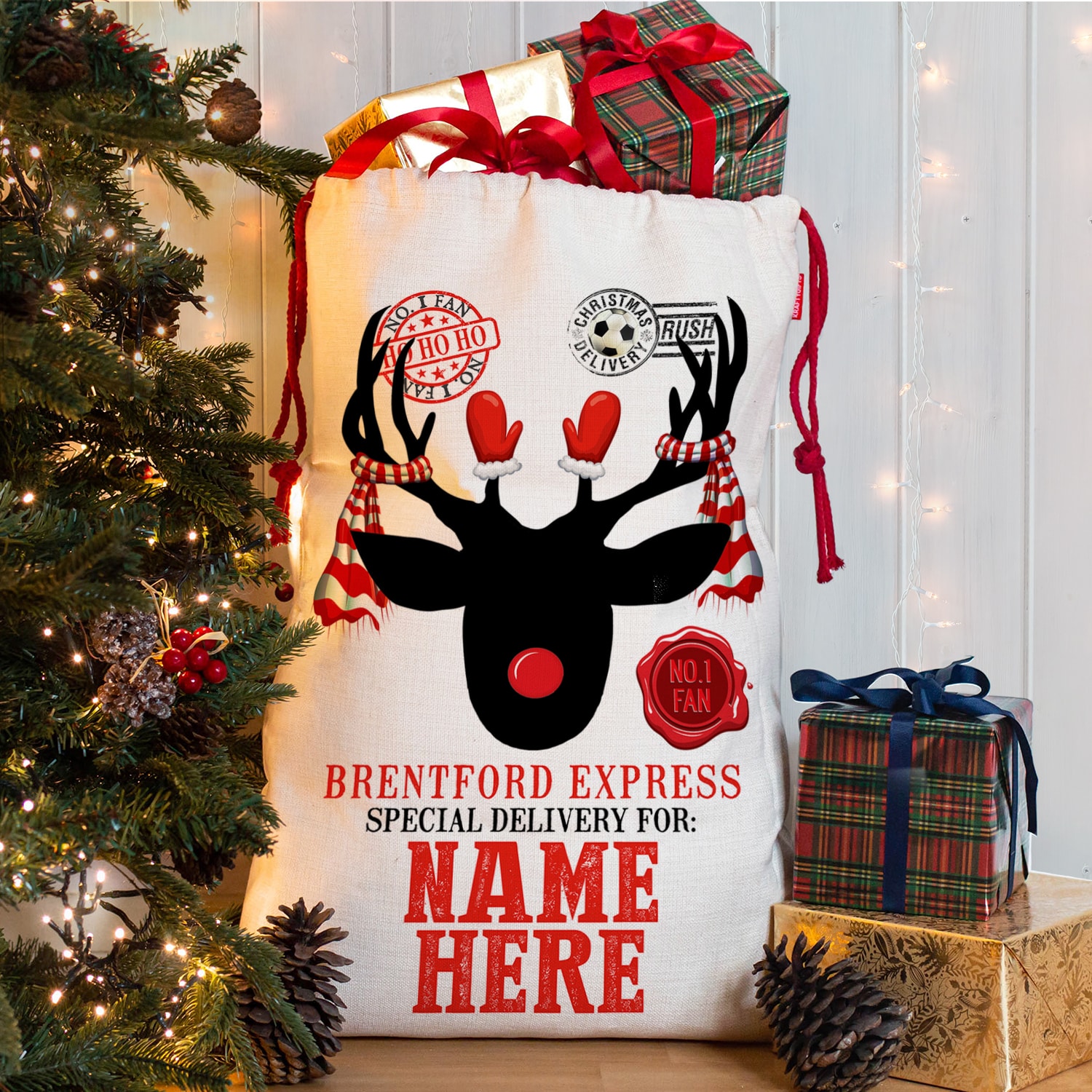 Personalised Brentford Football Reindeer Christmas Sack RCS10