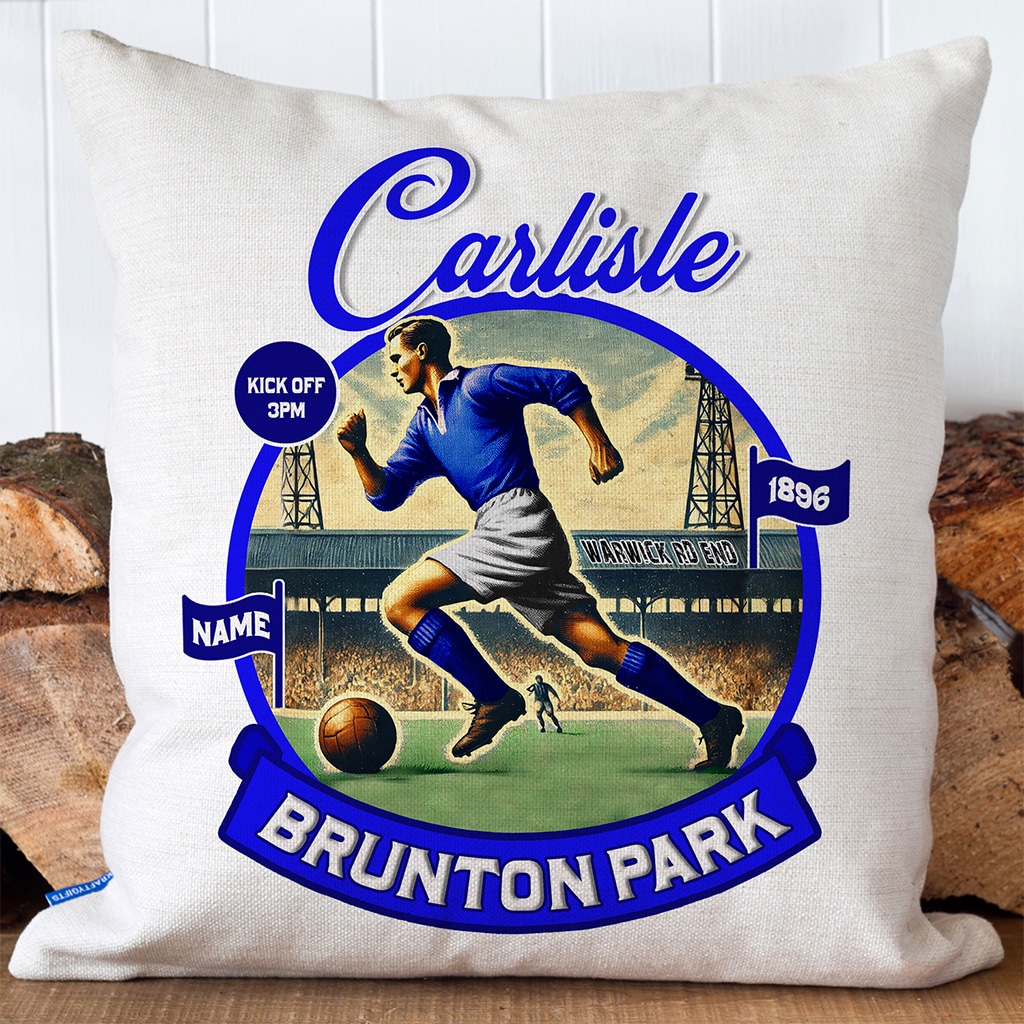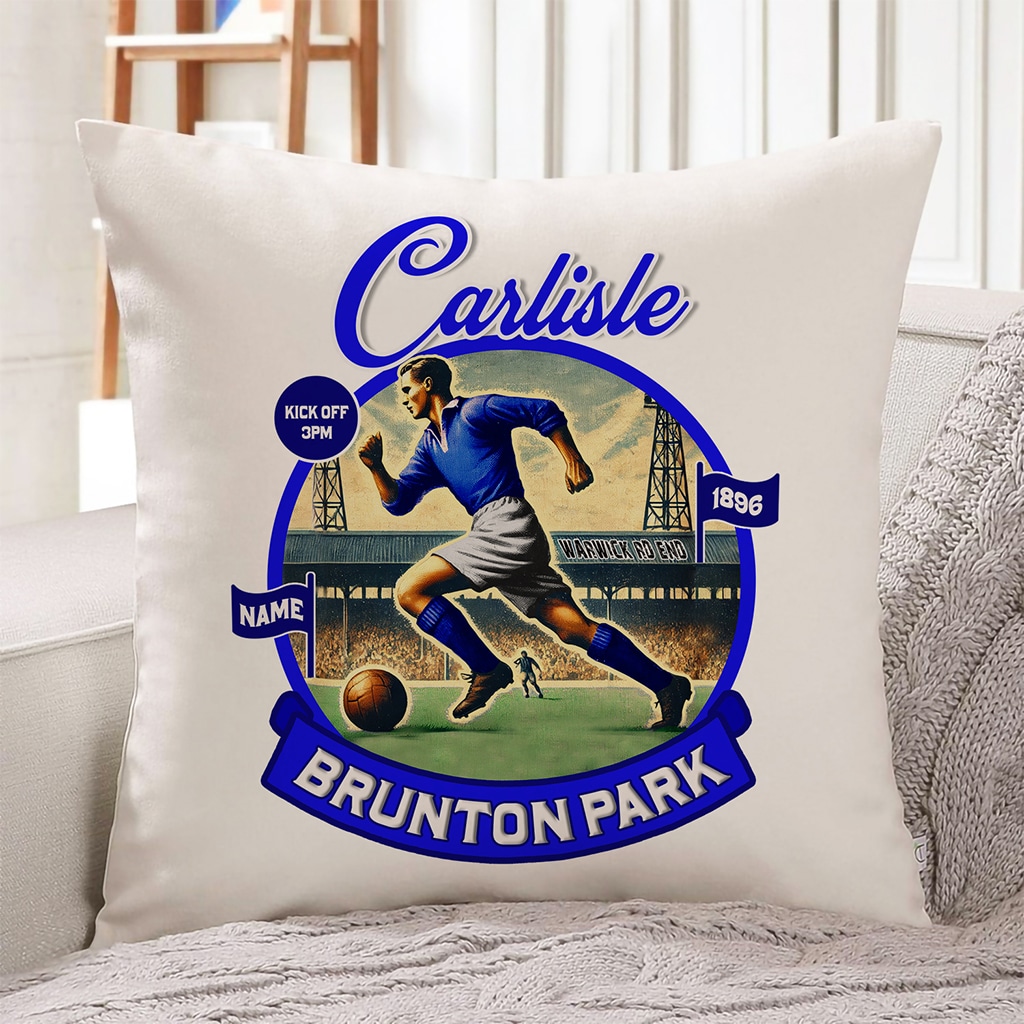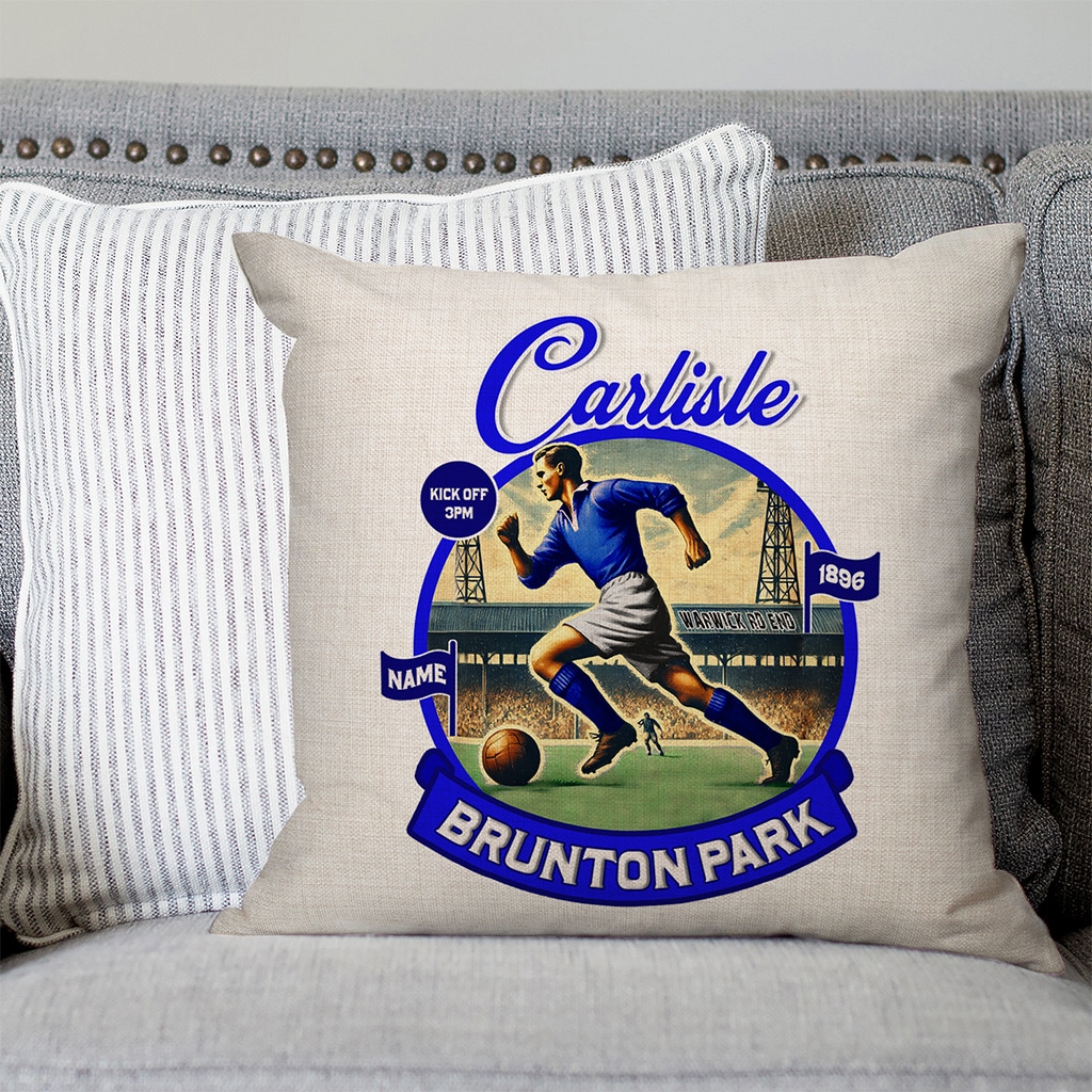 Personalised Carlisle Vintage Nostalgia Football Cushion Cover, the Perfect Vintage Football Team Fan Gift!