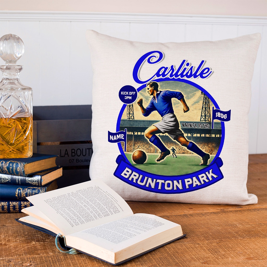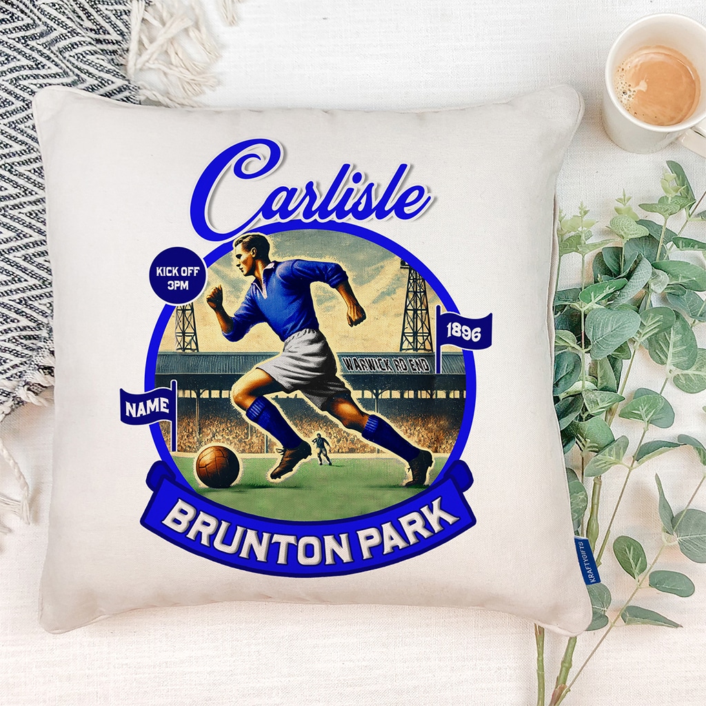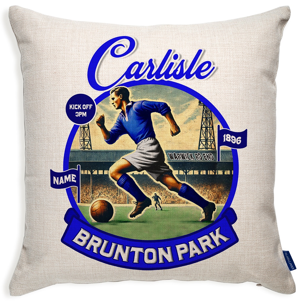 Personalised Carlisle Vintage Nostalgia Football Cushion Cover, the Perfect Vintage Football Team Fan Gift!