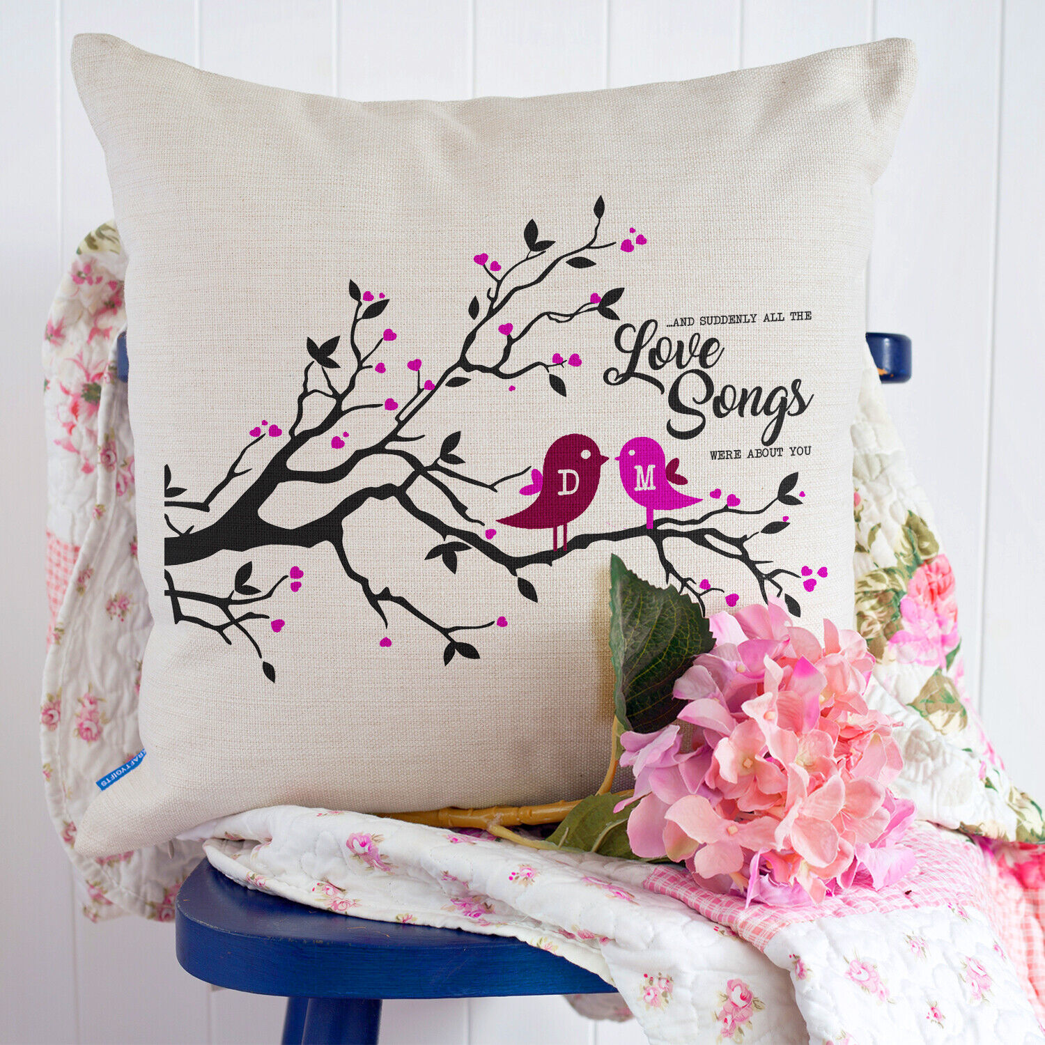 Personalised Couple Cushion Cover Love Bird Anniversary Valentines Day 2024 KC25