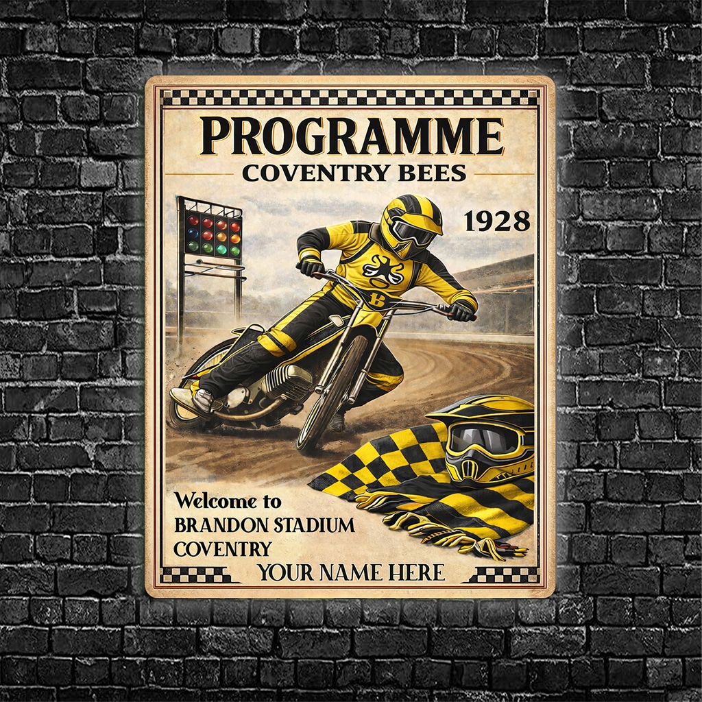 Personalised Coventry Bees Speedway Metal Wall Sign is the perfect gift for any Speed Way fan.