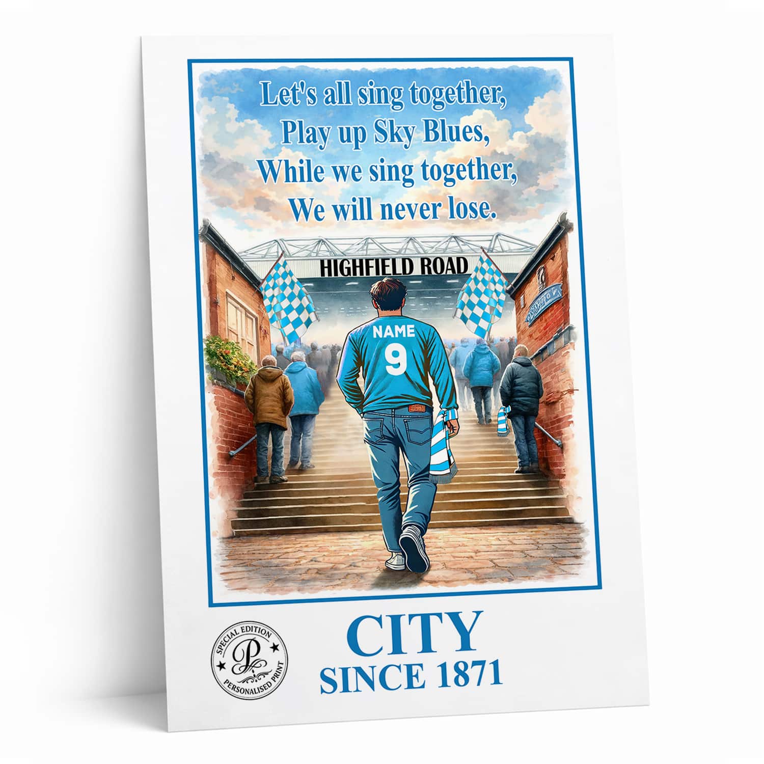 Personalised Coventry Football Stadium Print A3 A4 Framed Unframed Wall Art Gift.