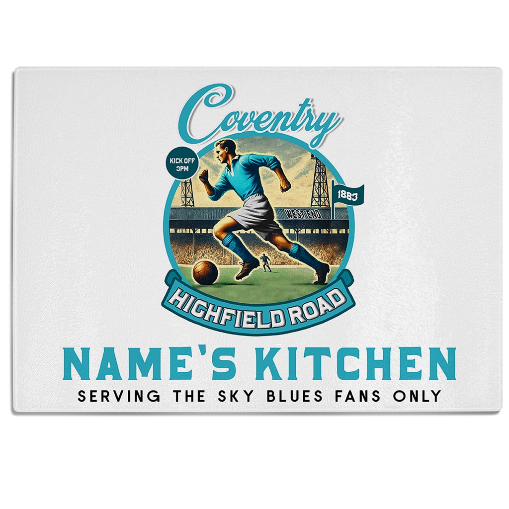 Personalised Coventry Vintage Nostalgia Football Chopping Board Glass Worktop Saver, the Perfect the Perfect Football Team Fan Gift!