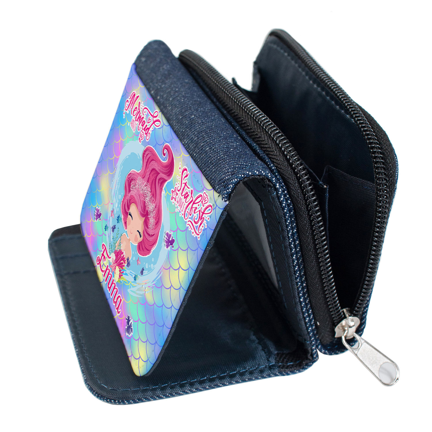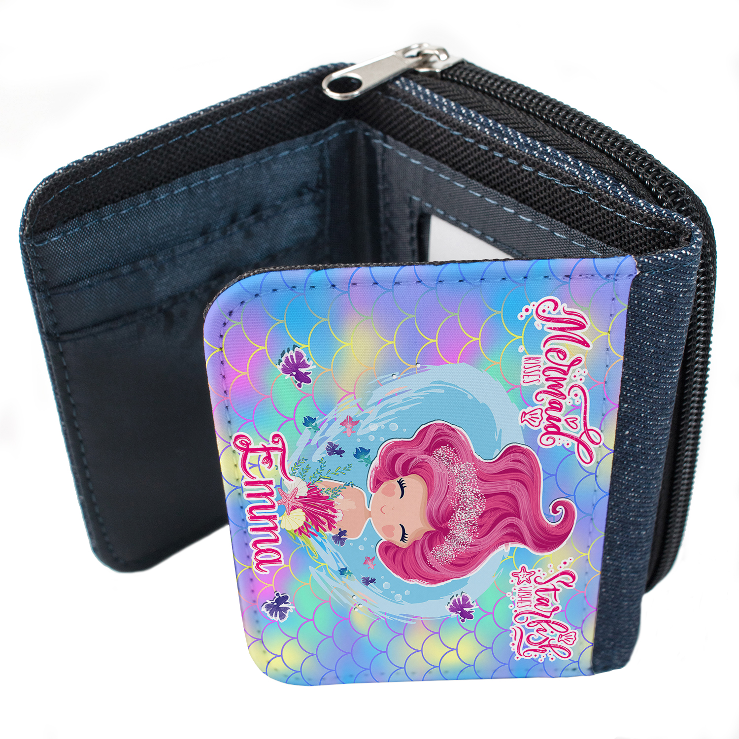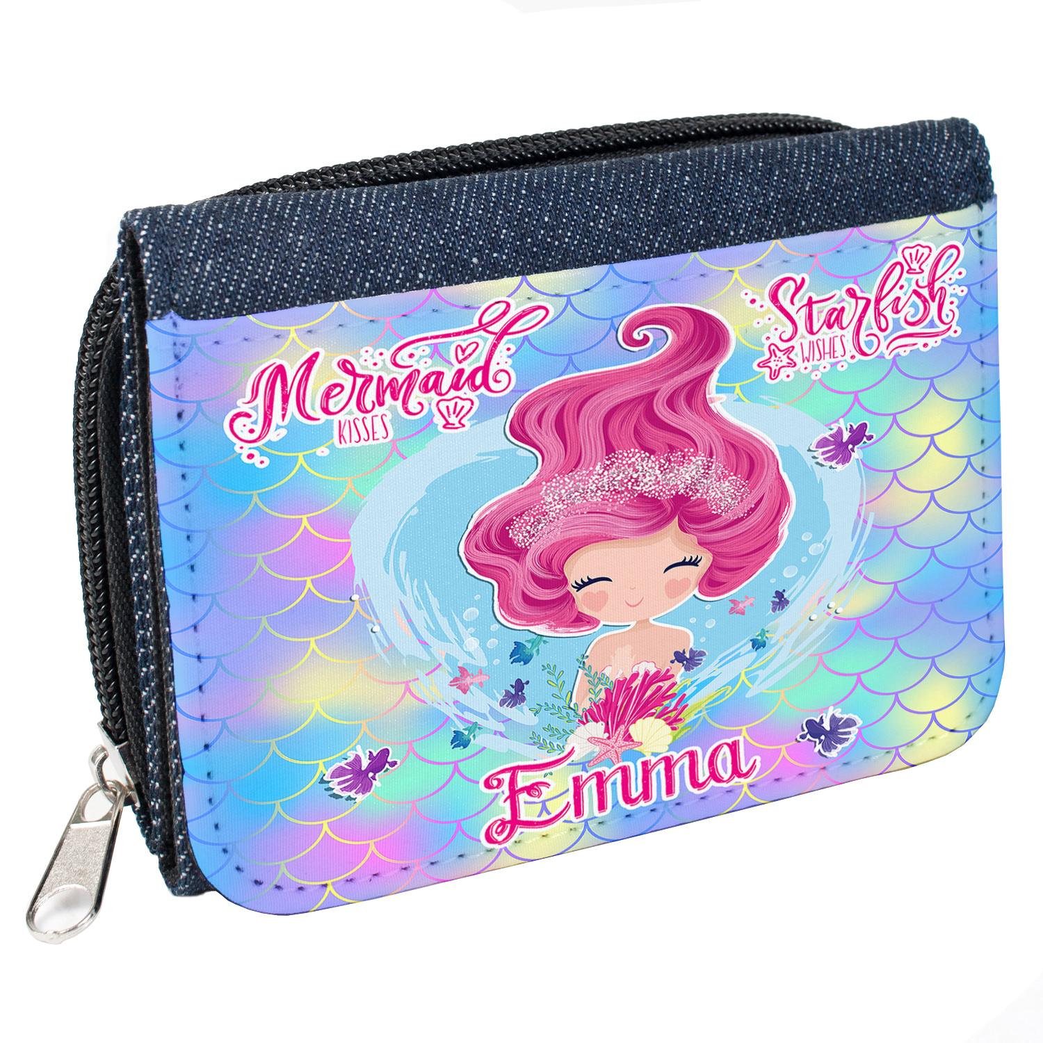 Personalised Cute Mermaid Kids Denim Purse KS200