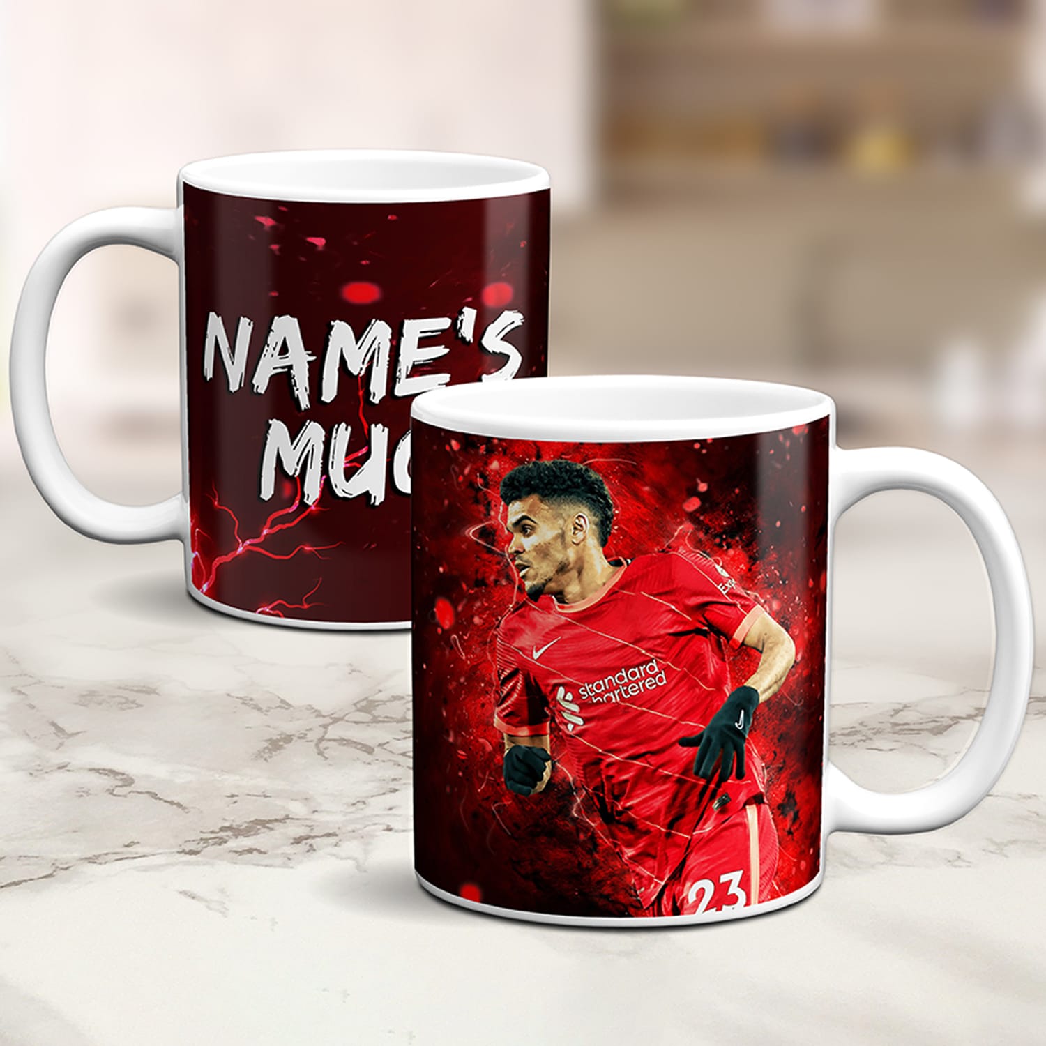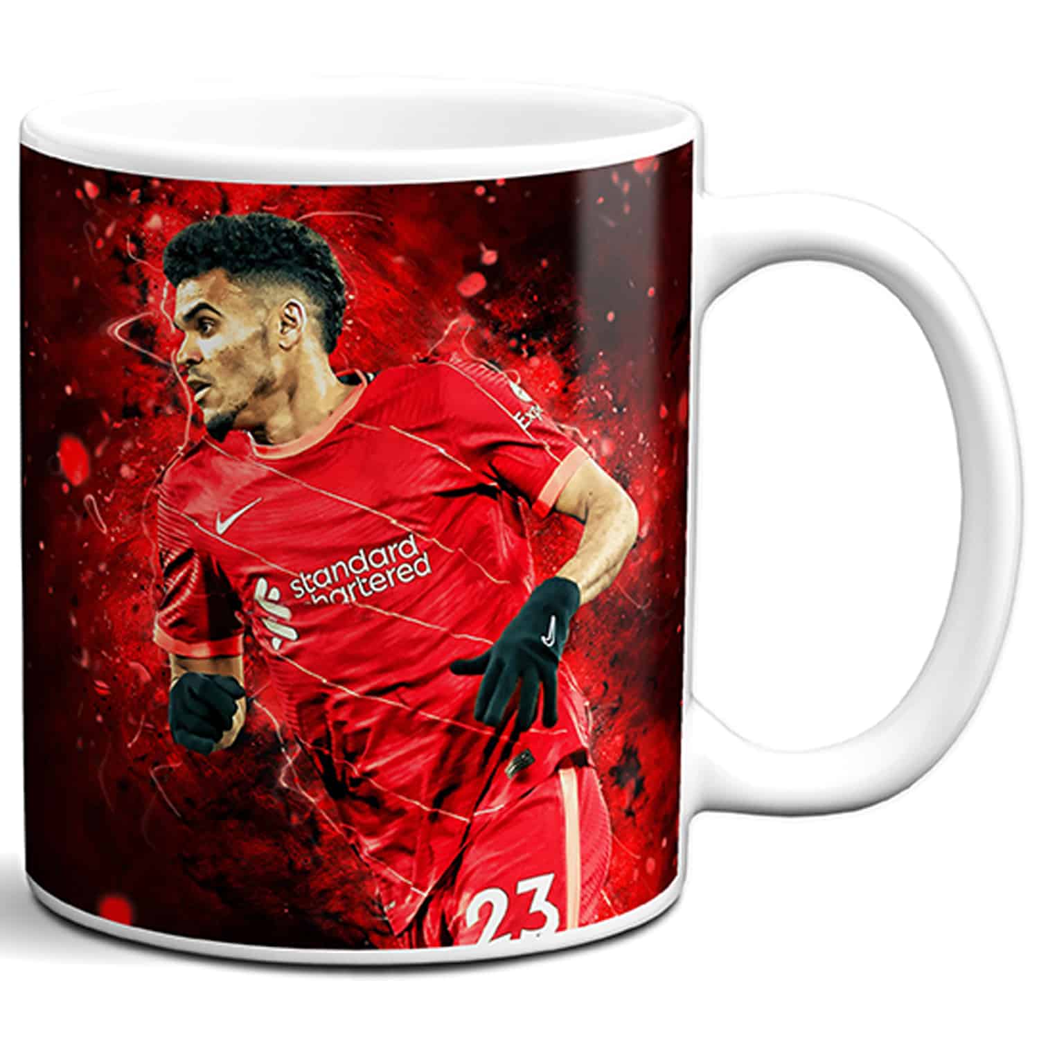 Personalised Diaz Liverpool Football Mug, the Perfect Football Team Fan Gift! Suprise any football supporter with one of these cool legend mugs. The ideal gift for boys birthdays and Christmas stocking fillers. They are handmade to order, personalised with your customised text.