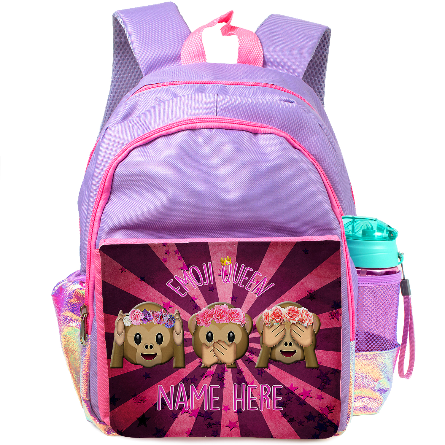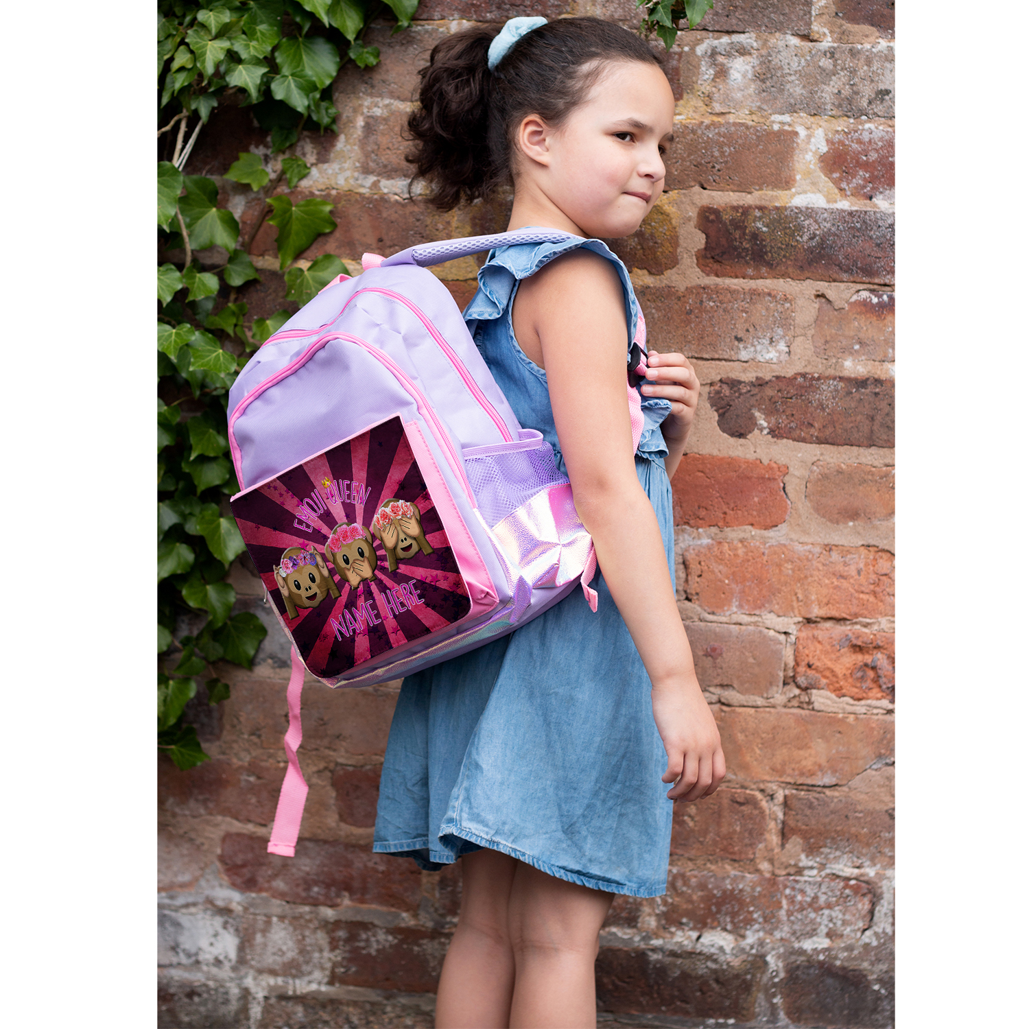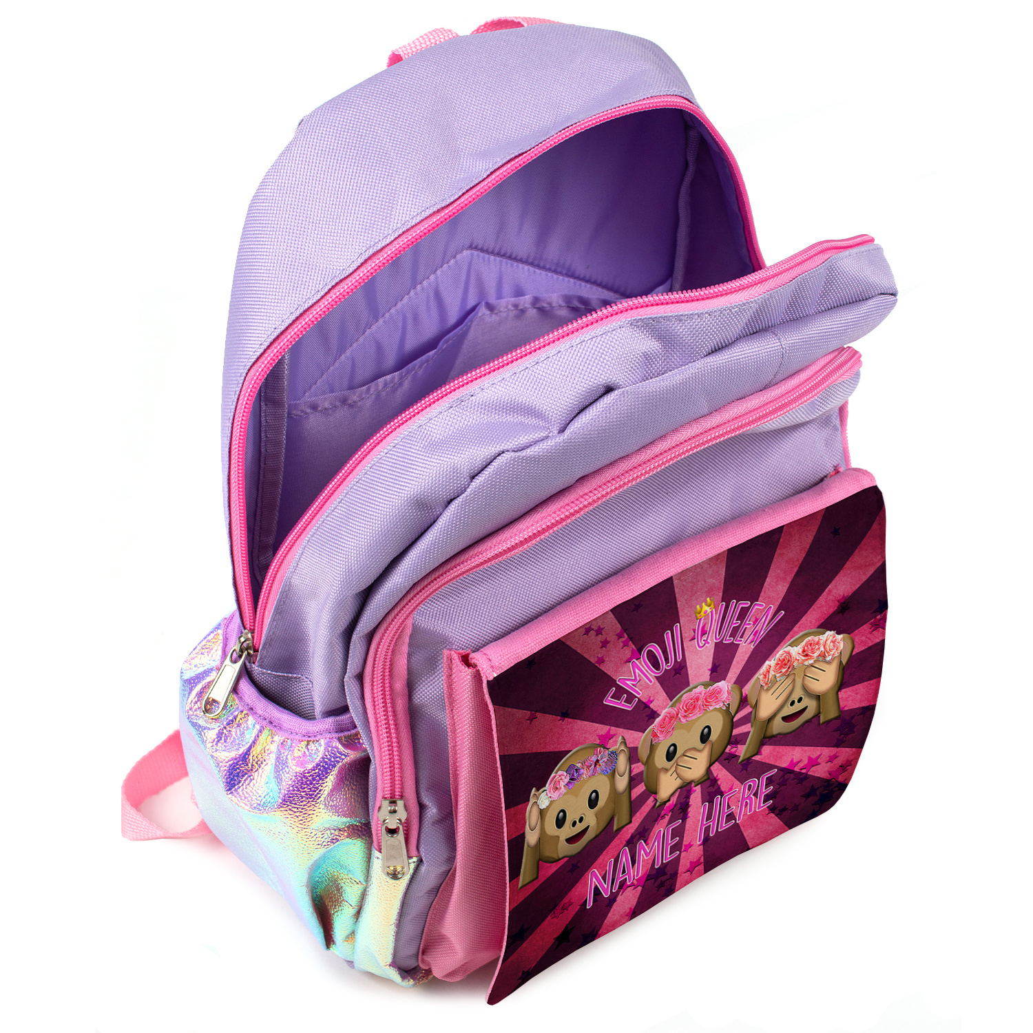 Personalised Emoji Purple Kids Backpack Girls Cute Monkey ST900