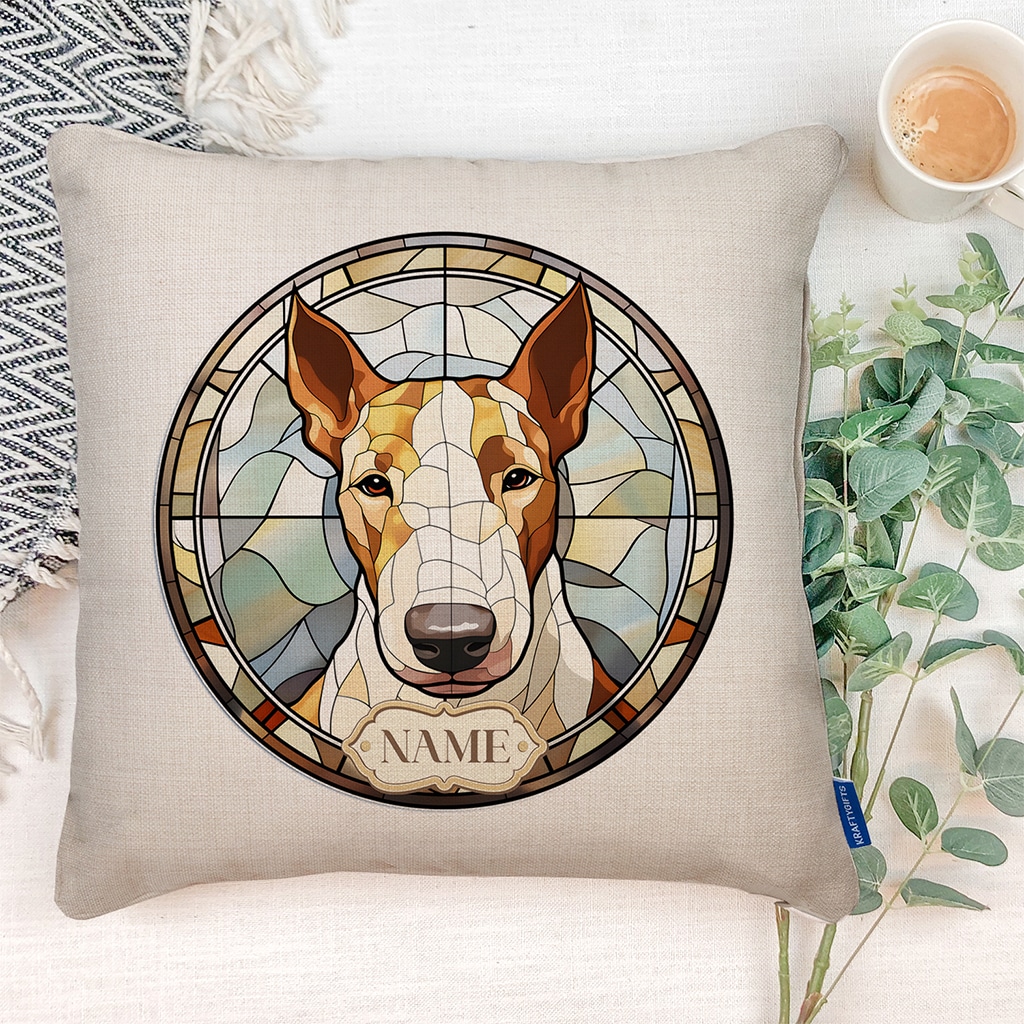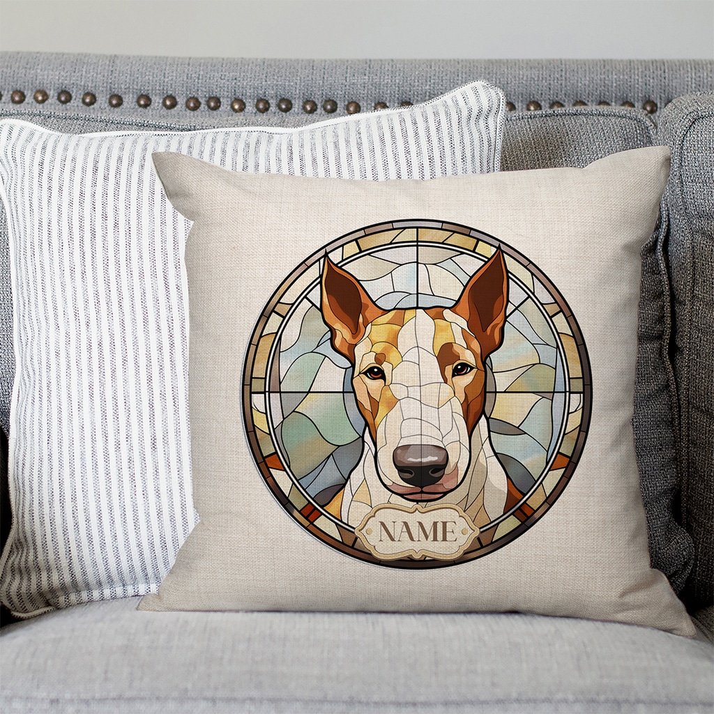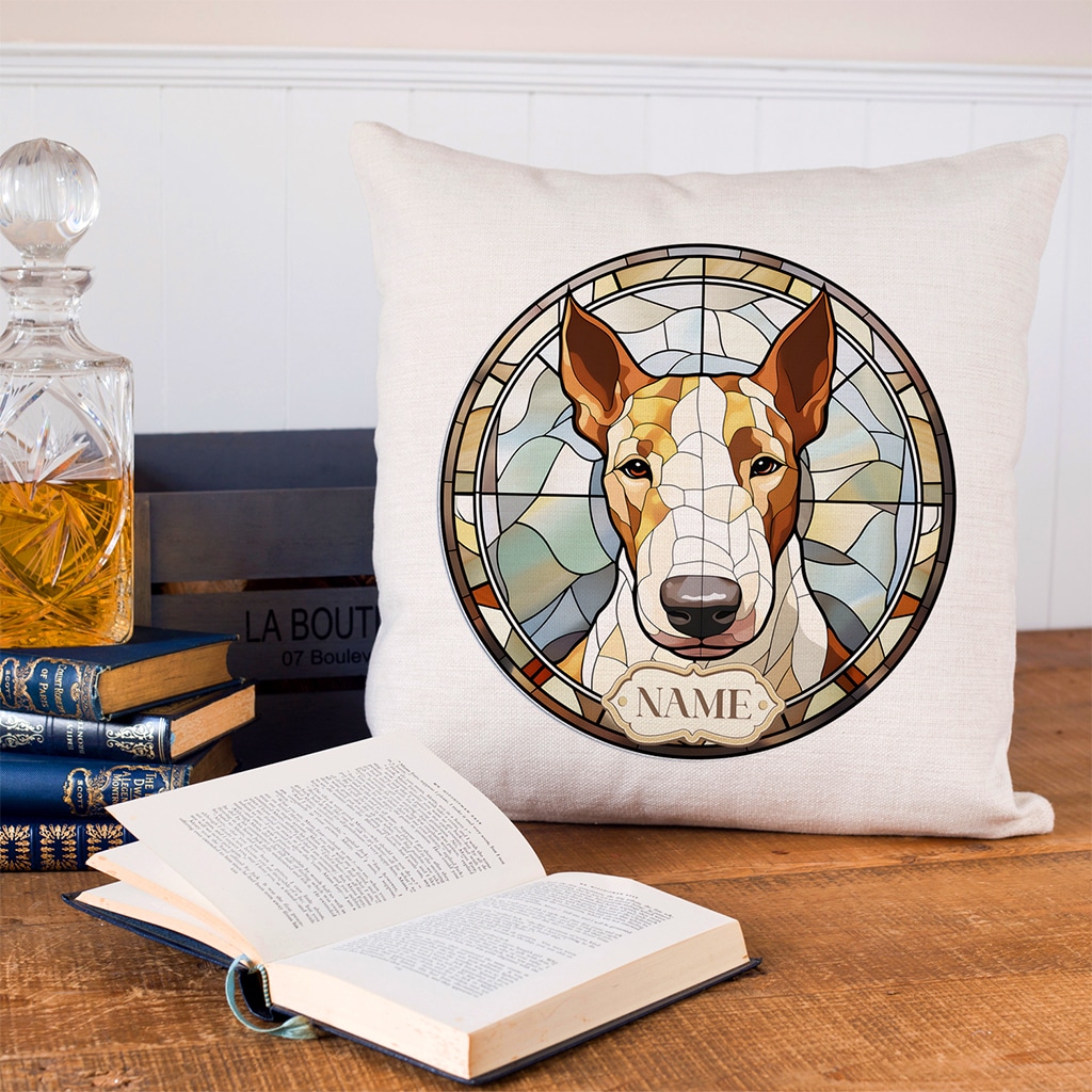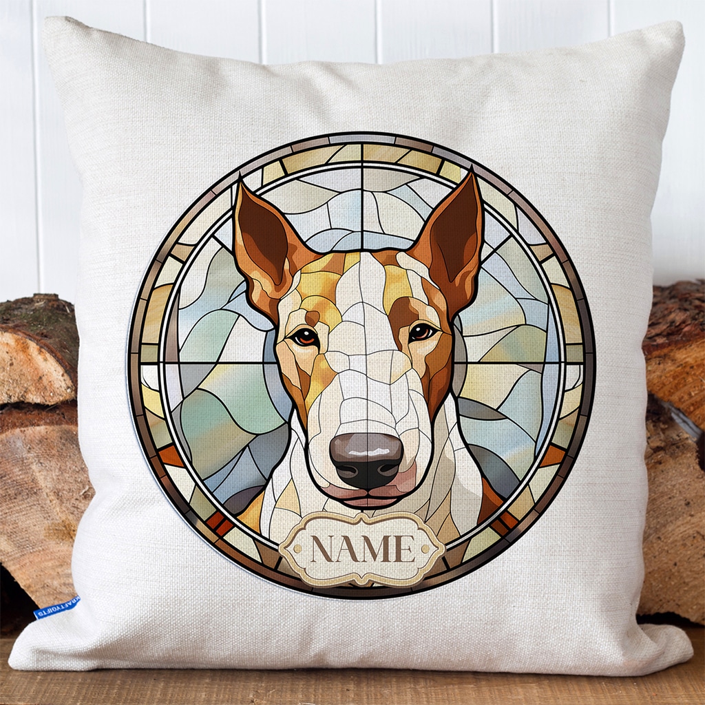 This Personalised English Bull Terrier Dog Portrait Cushion Cover is the perfect dog mum and dog dad gift for any occasion including birthdays, housewarming, or a new puppy gift.