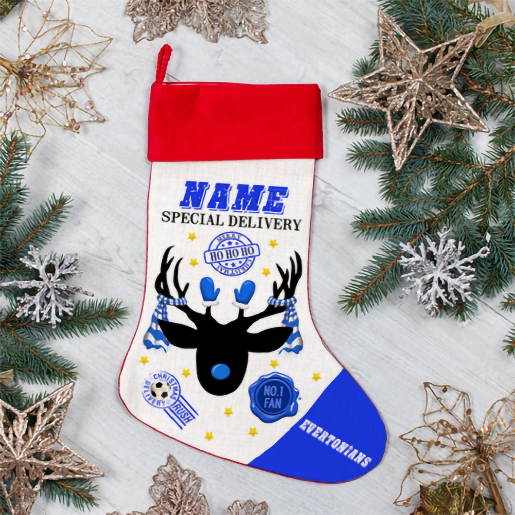 Personalised Everton Football Christmas Stocking, the perfect seasonal gift for every football fan.