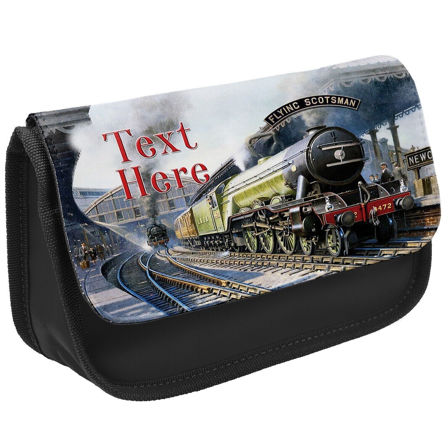 Personalised Flying Scotsman Kids Black Steam Train Pencil Case Stationery Bag KSU05