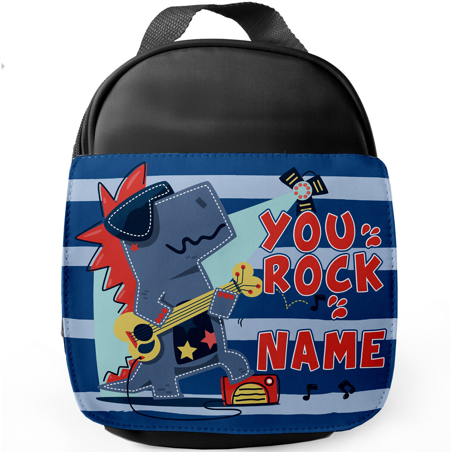 Personalised Football Dinosaur Rock Black School Lunch Bag KK10