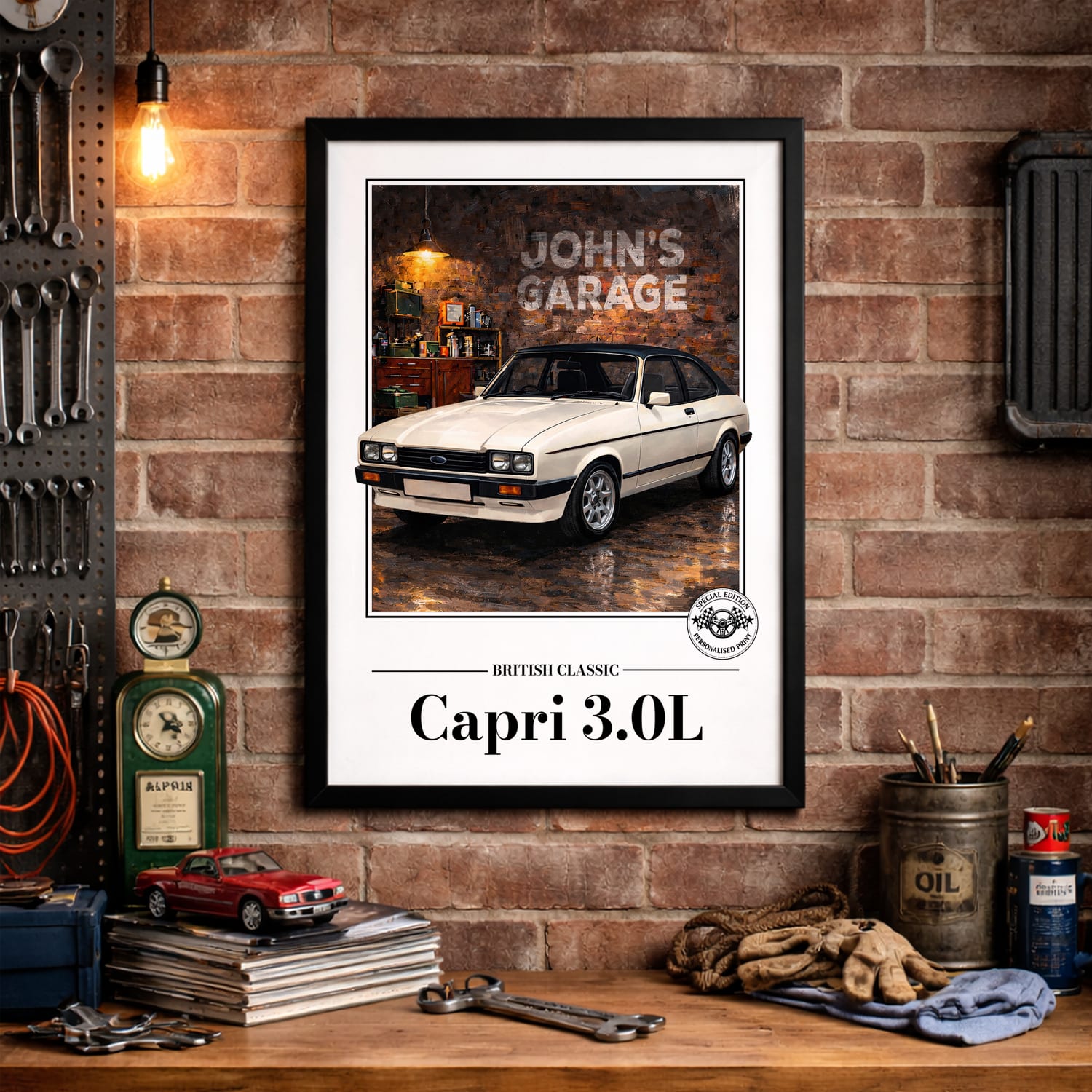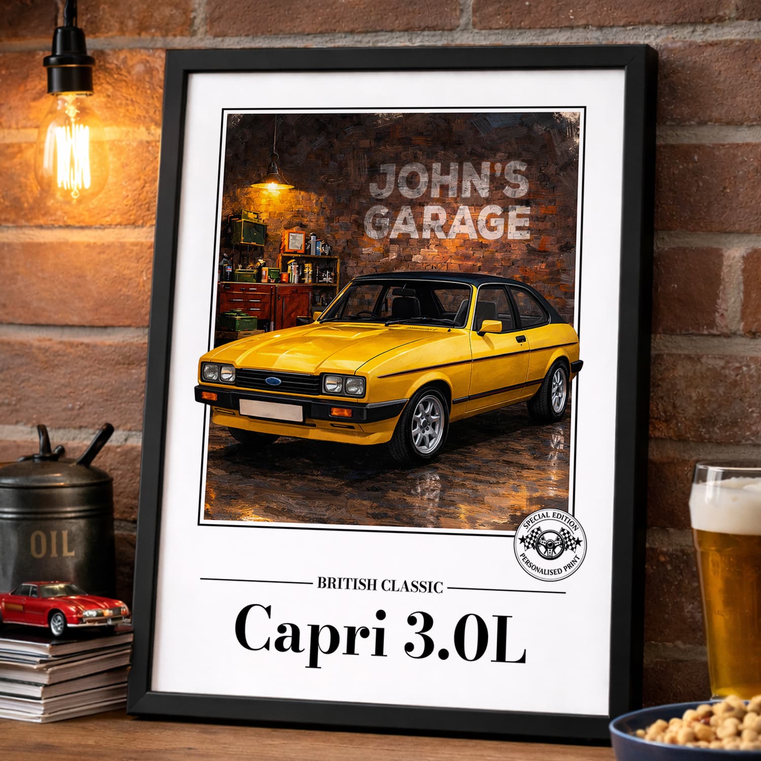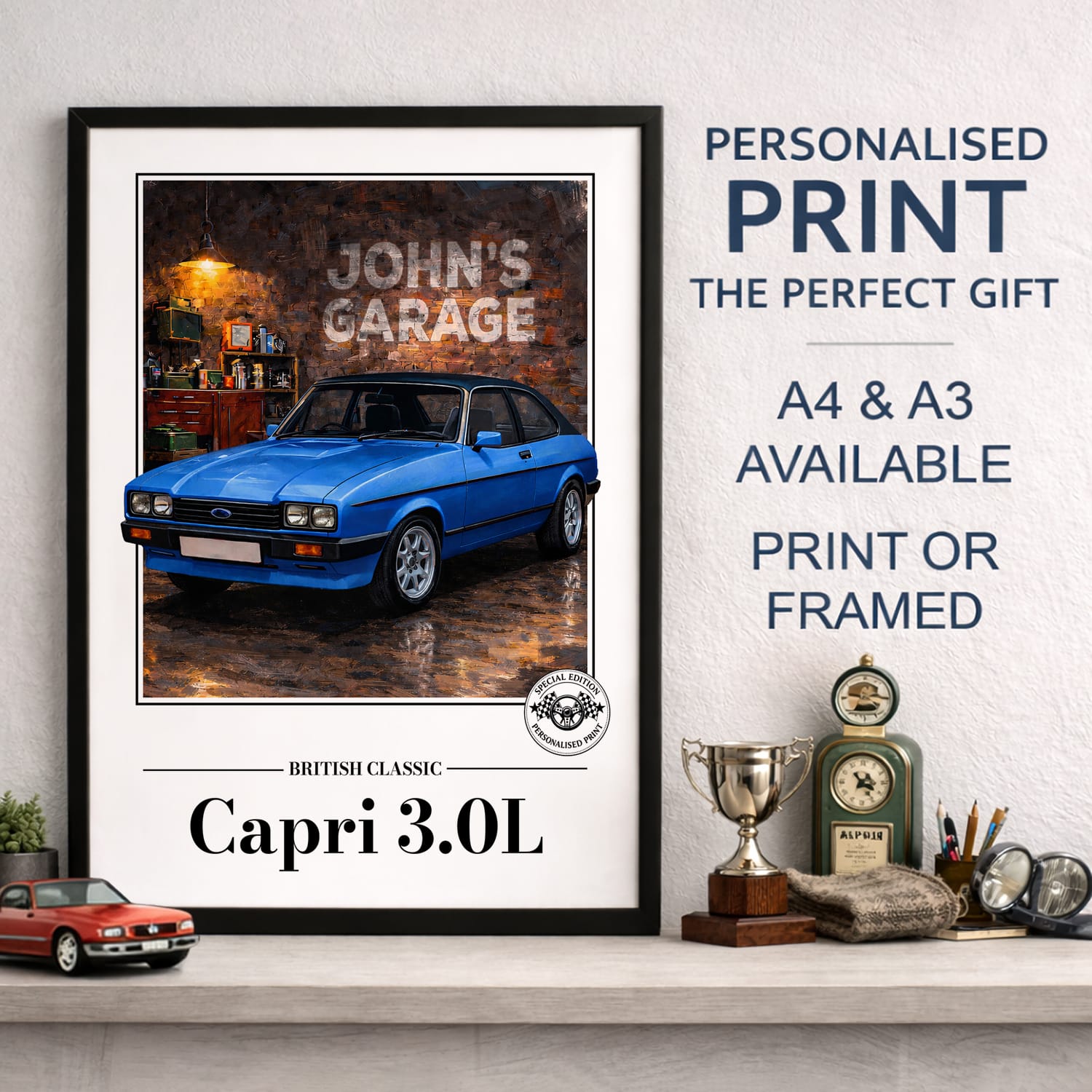 Personalised Ford Capri 3.0L Classic Car Print A3 A4 Framed Unframed Wall Art Gift