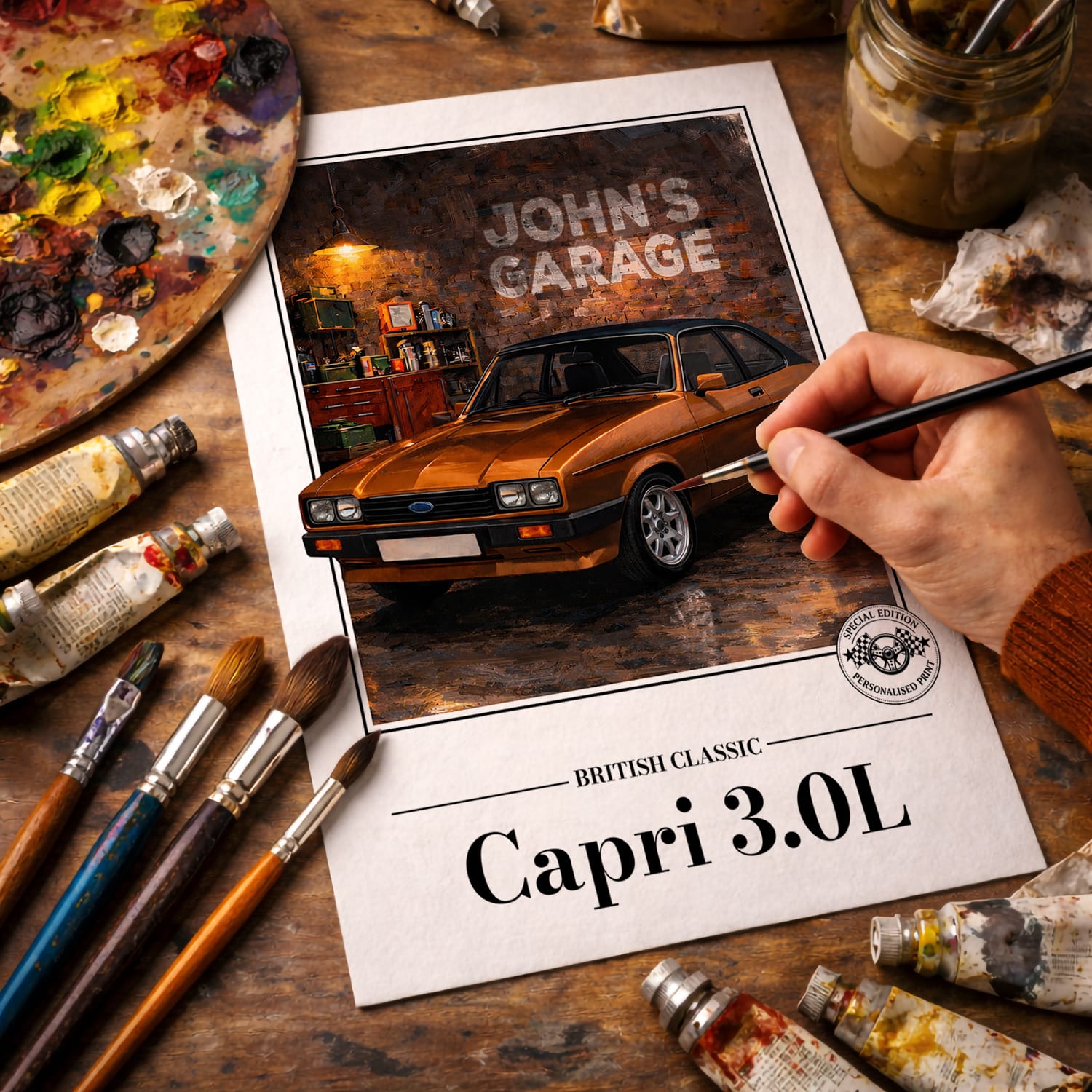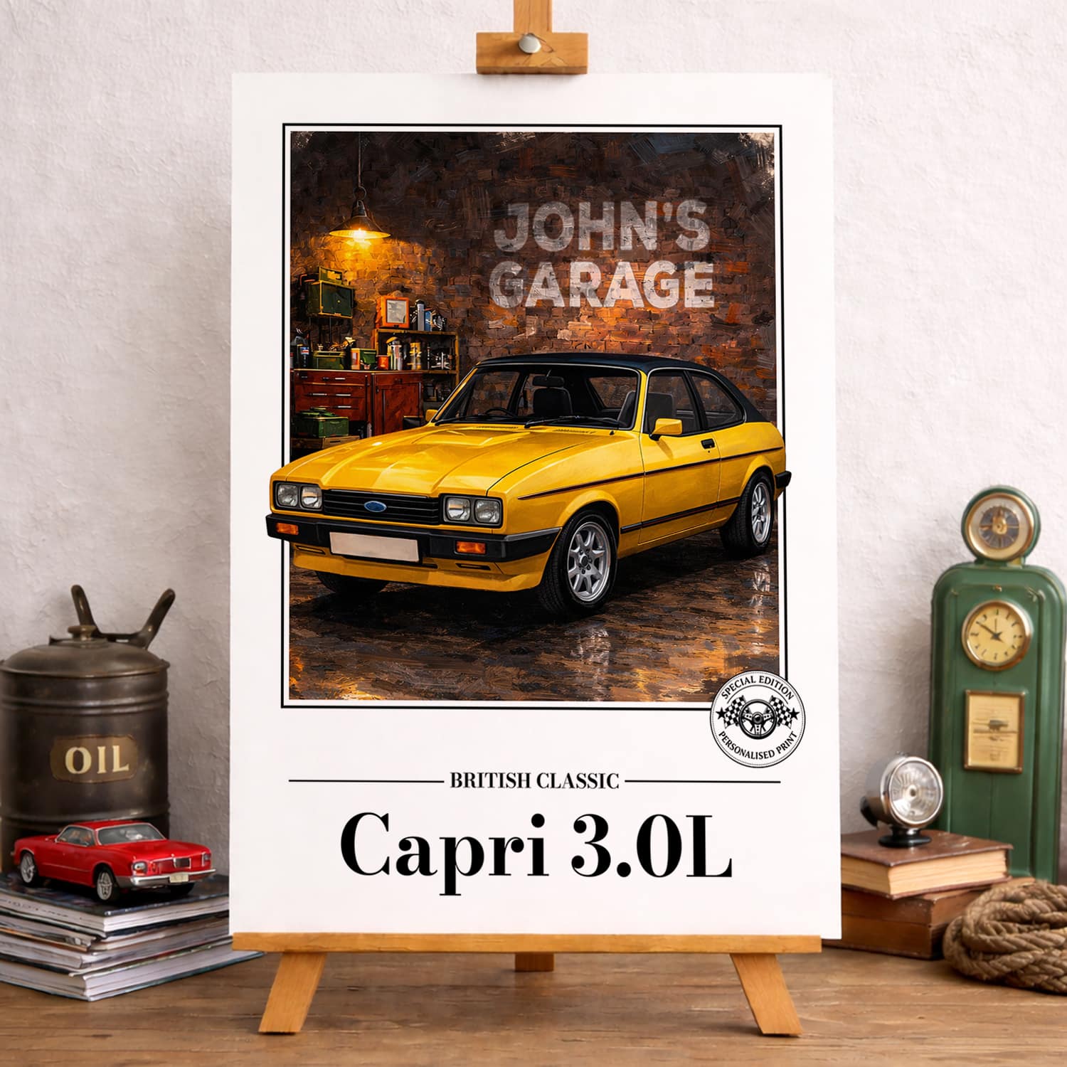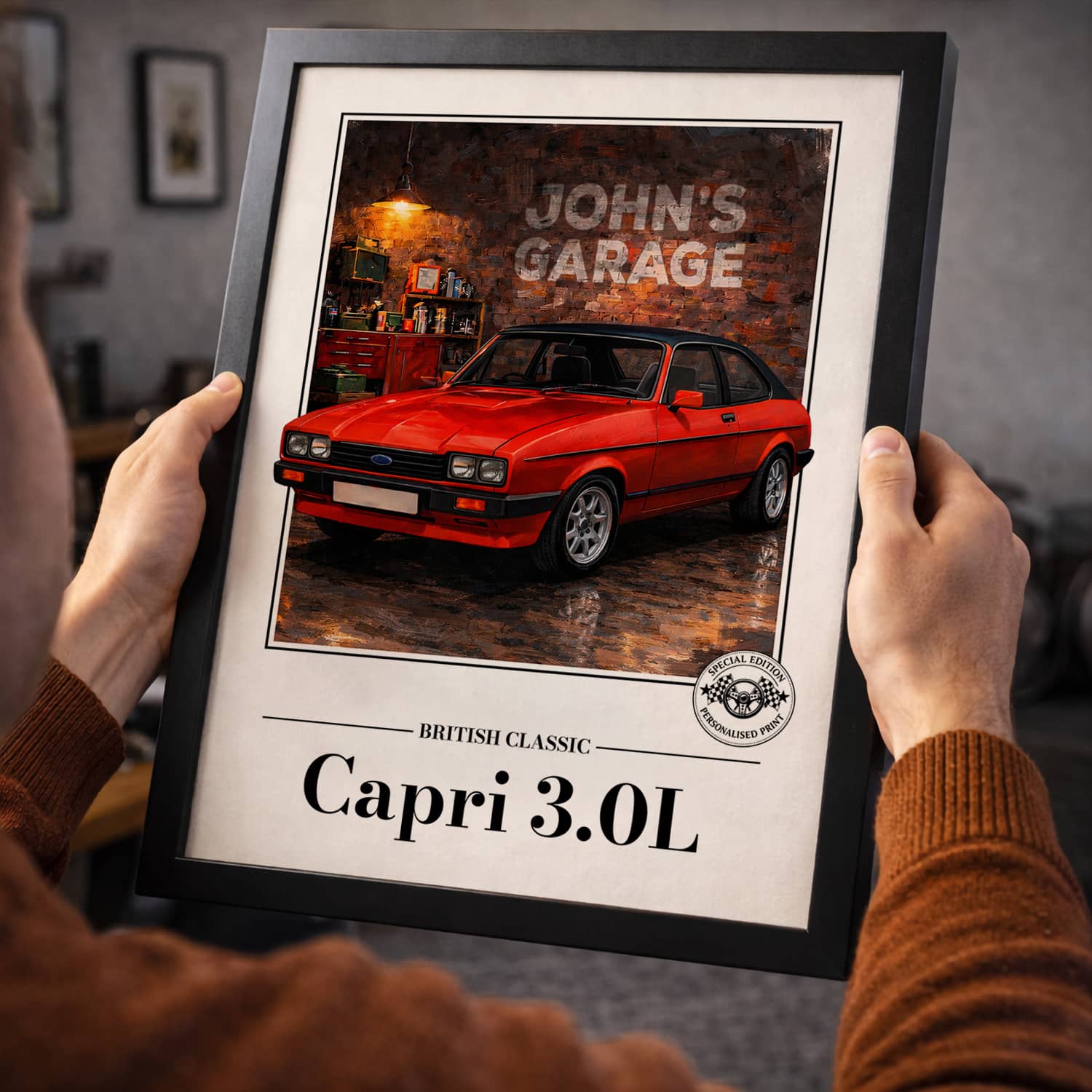Personalised Ford Capri 3.0L Classic Car Print A3 A4 Framed Unframed Wall Art Gift