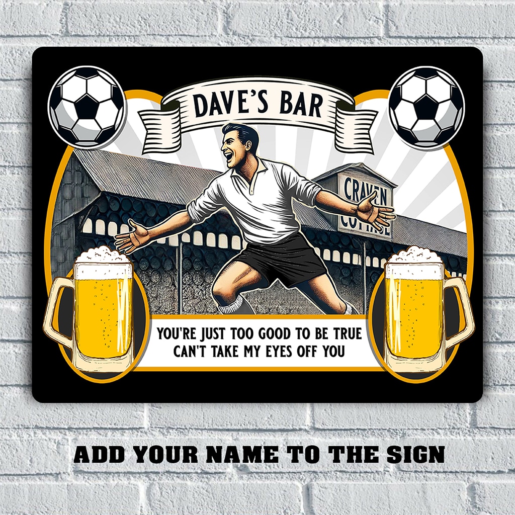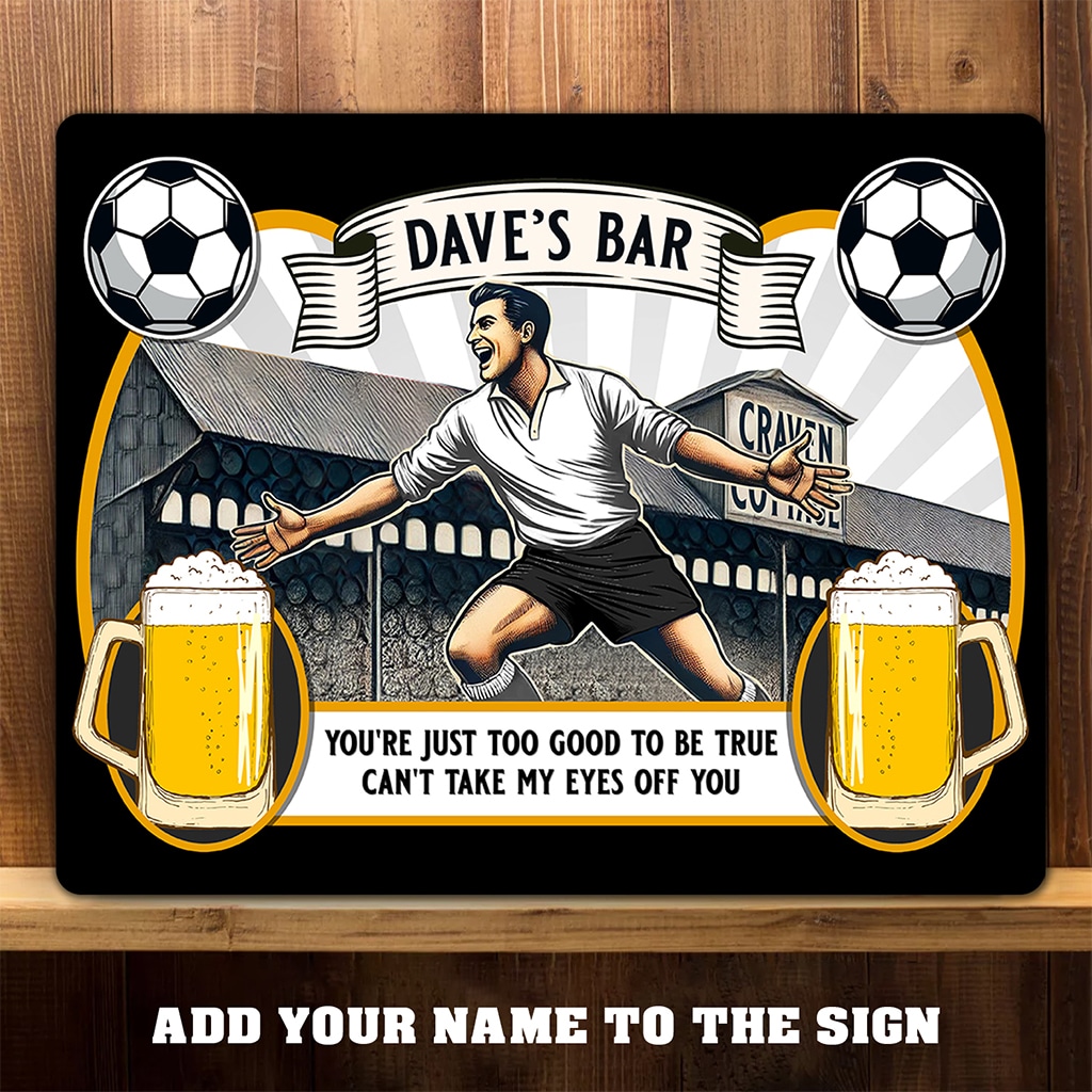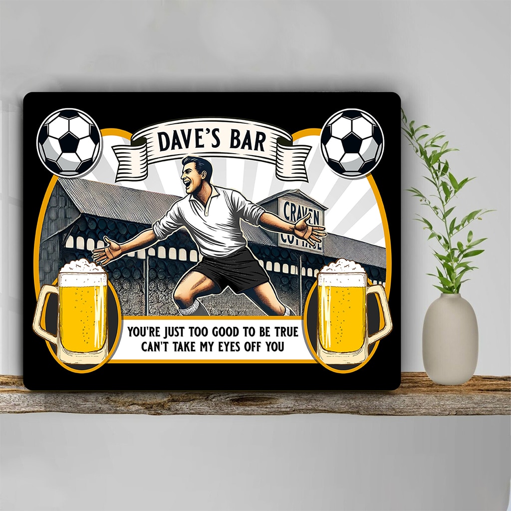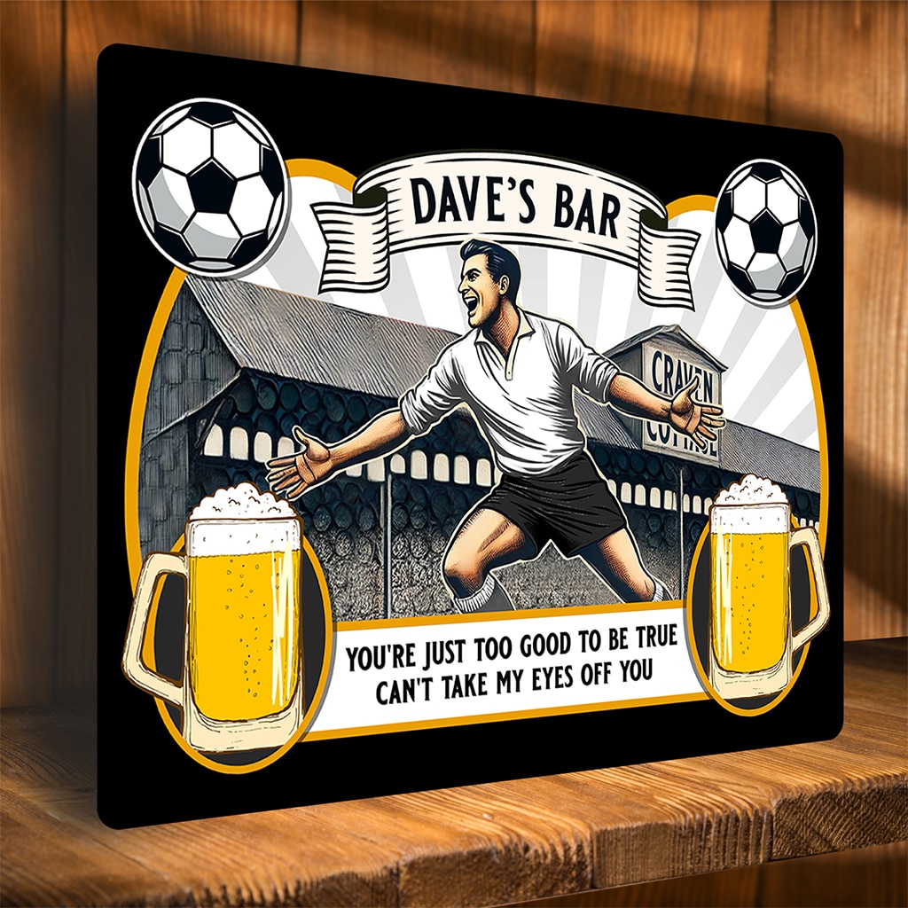 With a nostalgic football stadium match day design and beer pints, this makes a great present for football fanatics. Sure to brighten up any room, bar, or pub! Ideal for birthdays, retirement and father’s day.