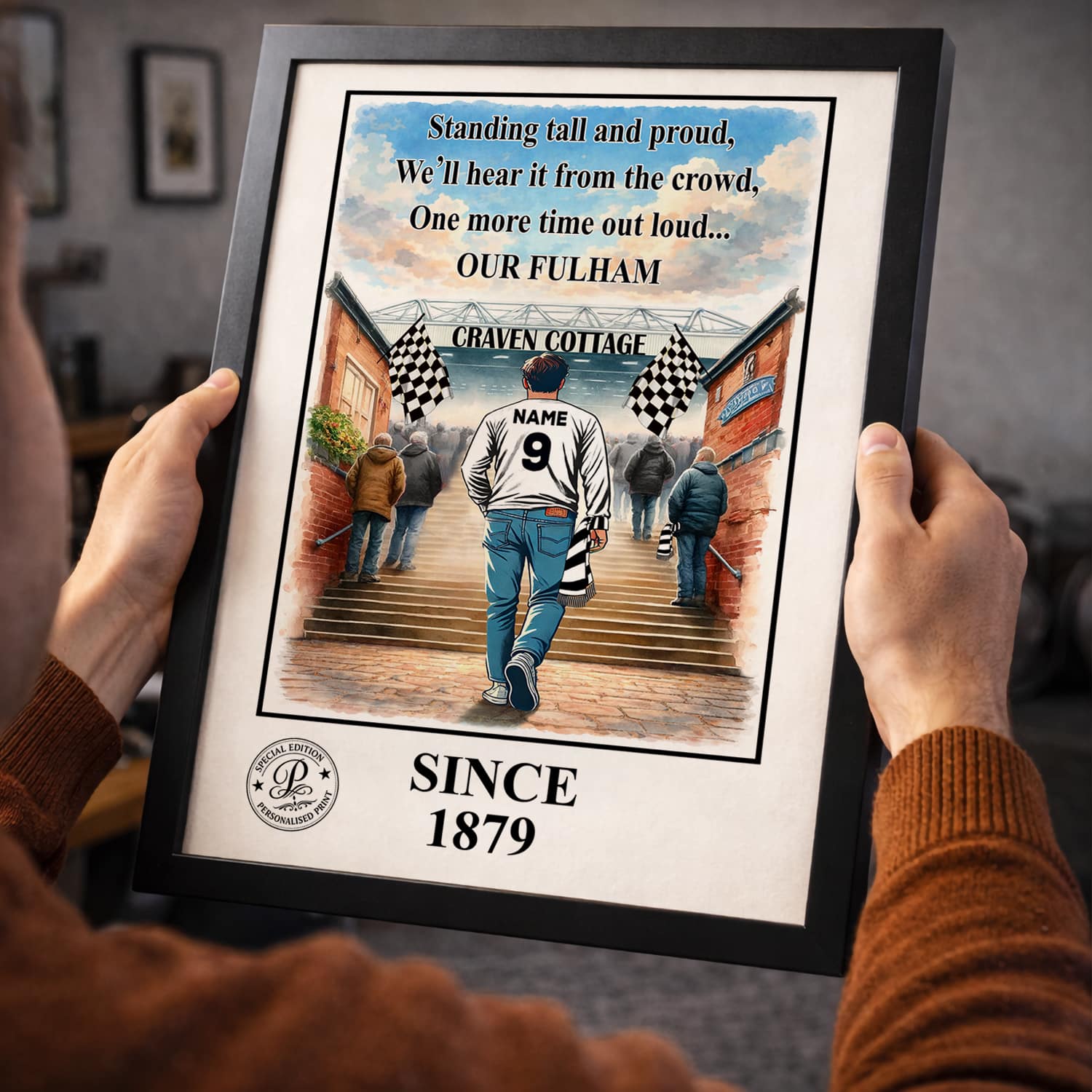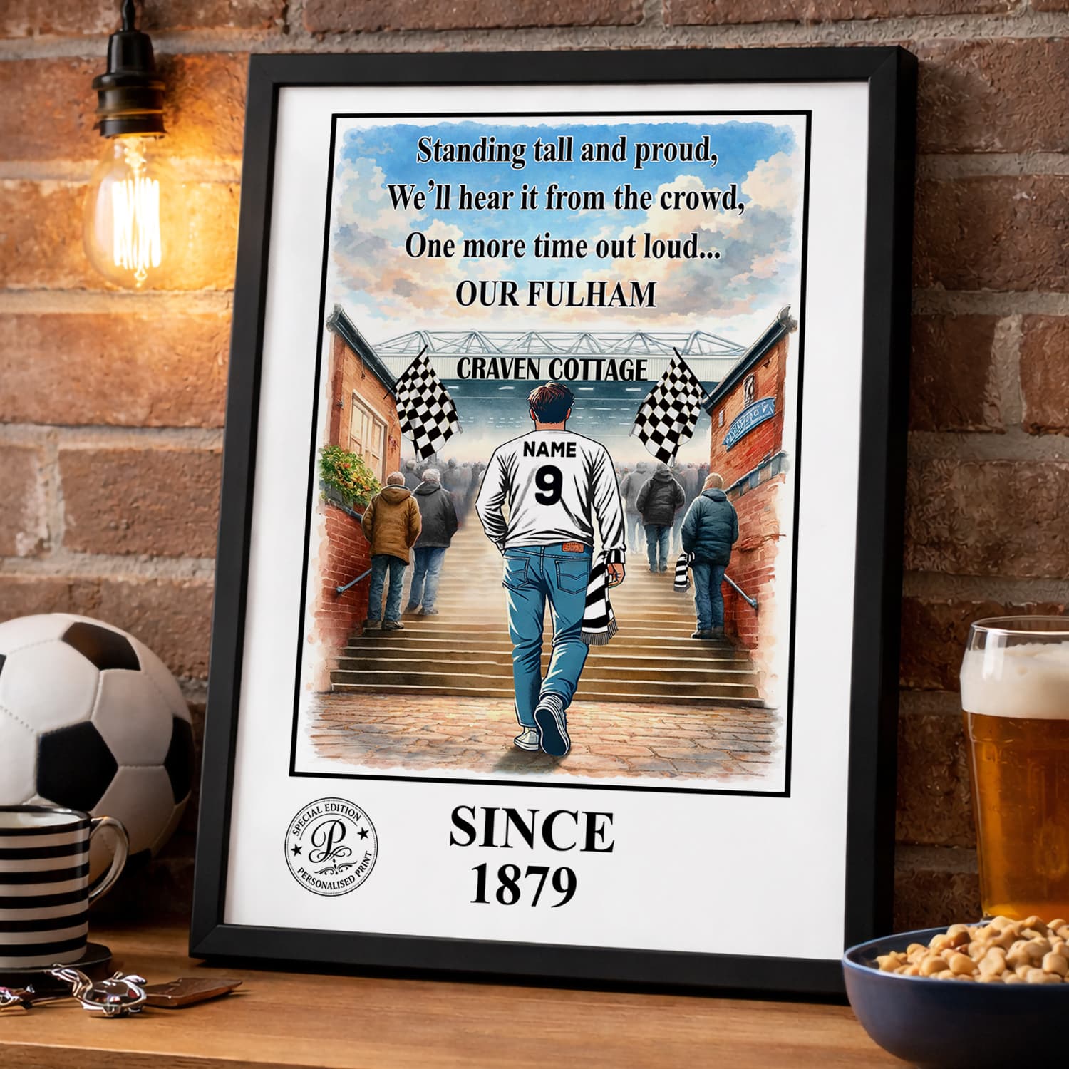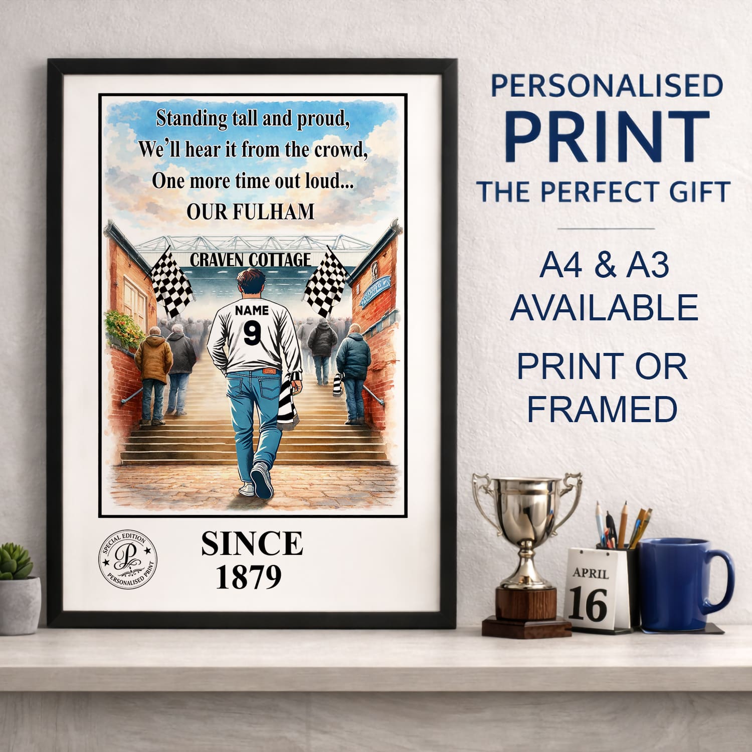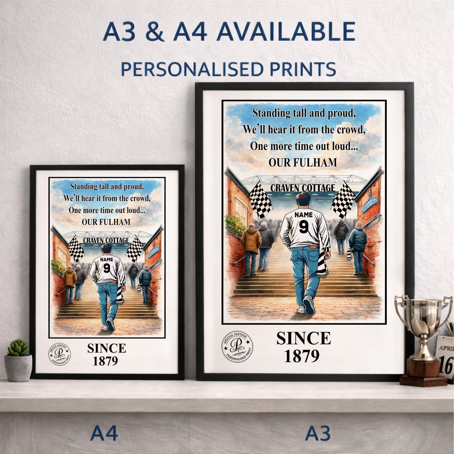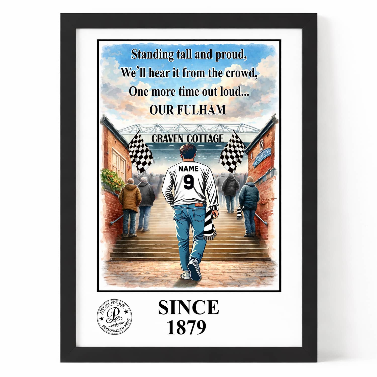 Personalised Fulham Football Stadium Print A3 A4 Framed Unframed Wall Art Gift.