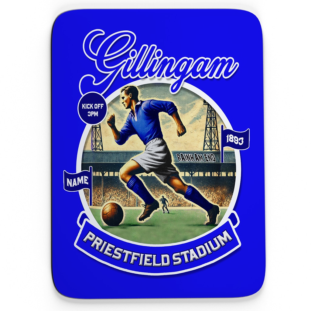 Personalised Gillingham Mouse Mat Football Nostalgia, is the perfect retro gift for any football fan. Ideal for working from home or in the work office, have custom name added. The Nostalgic football team mouse pad is the perfect birthday or retirement gift and looks great for any keen footballer.