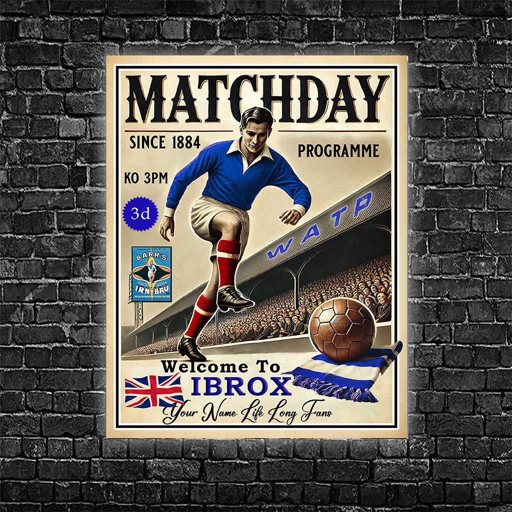 Personalised Glasgow Rangers Football Programme Retro Metal Sign PCS36