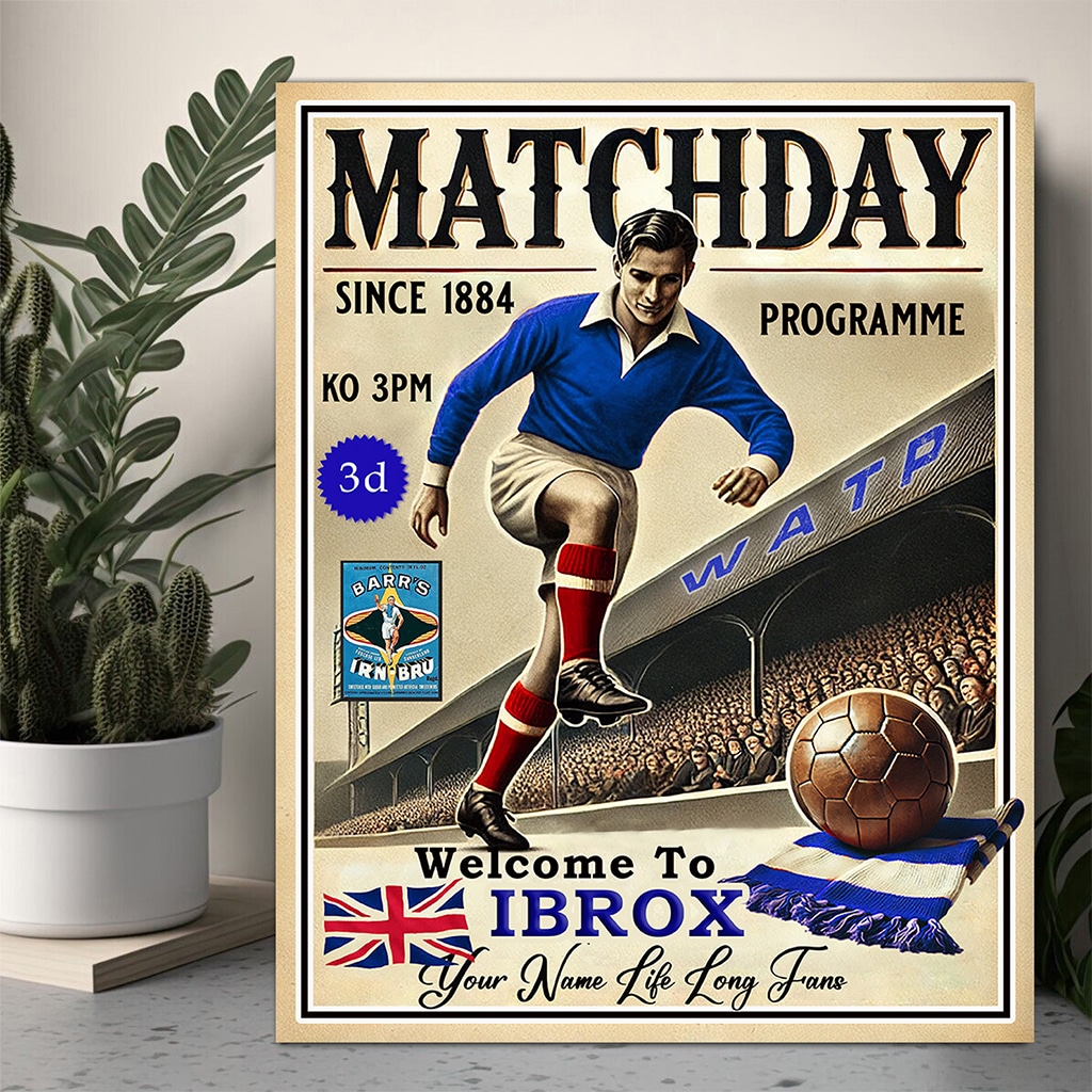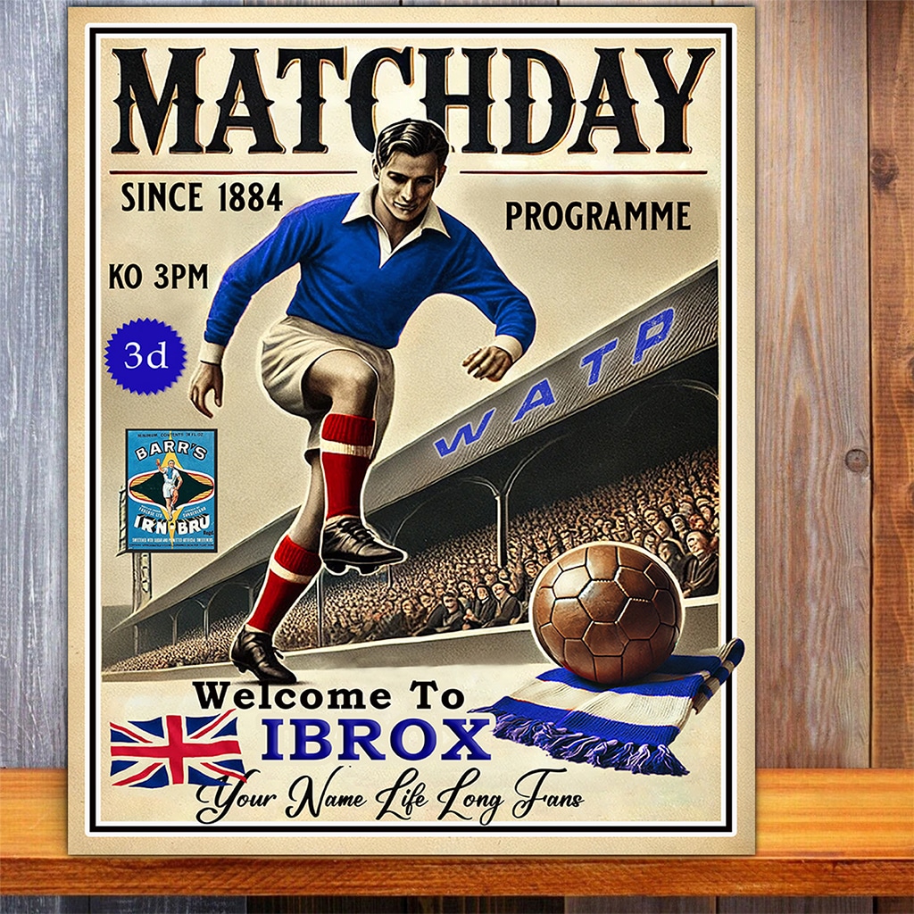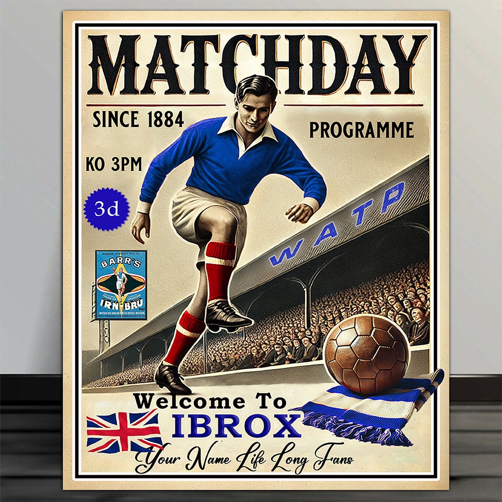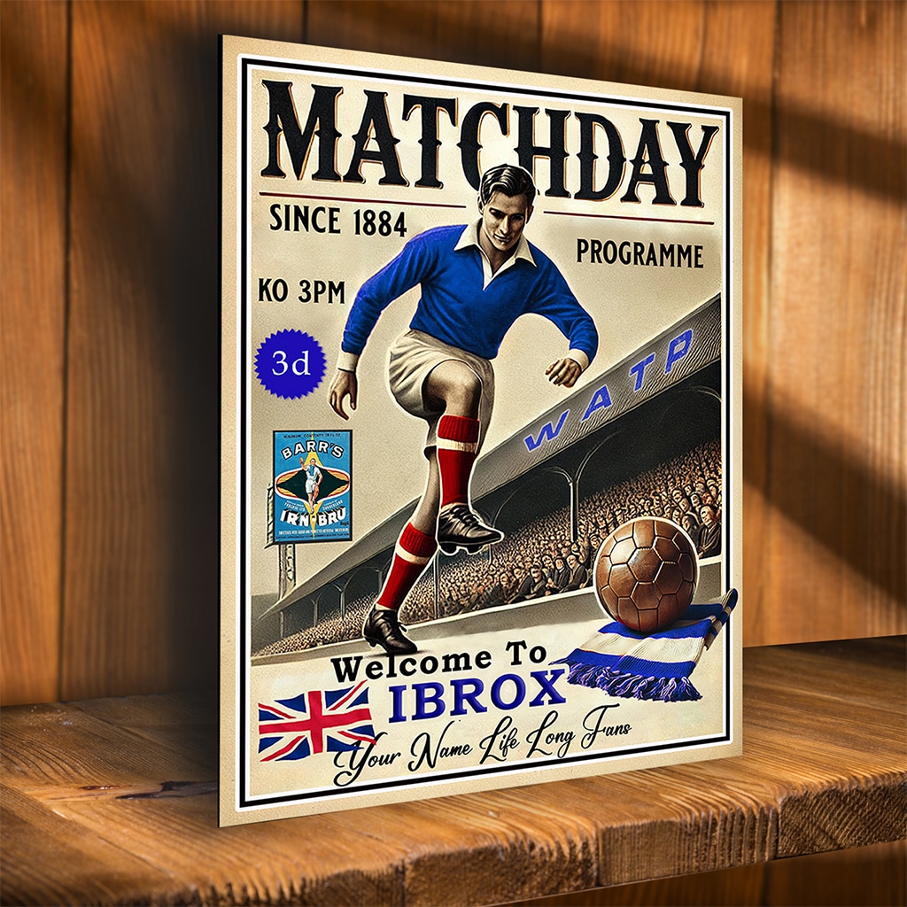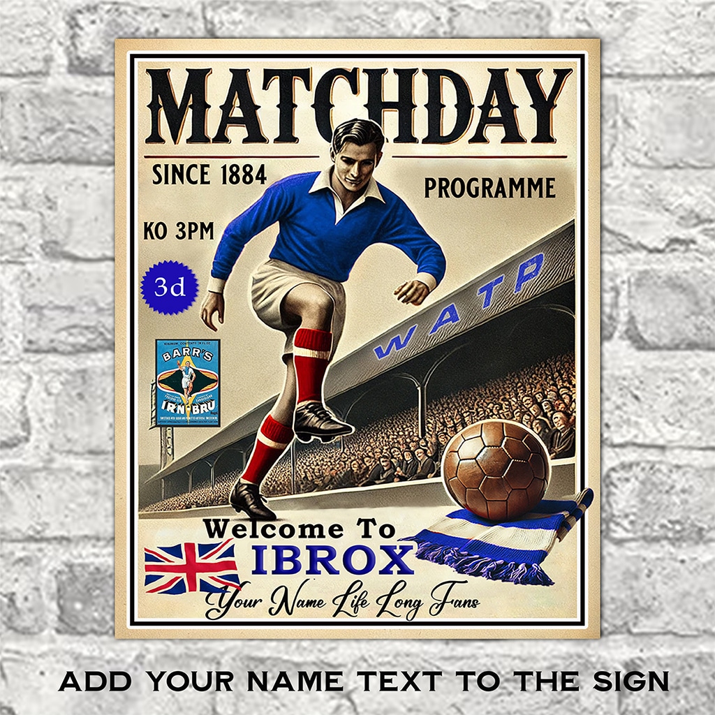 This Personalised Glasgow Rangers Football Programme Retro Metal Sign is the perfect vintage football fan gift.
