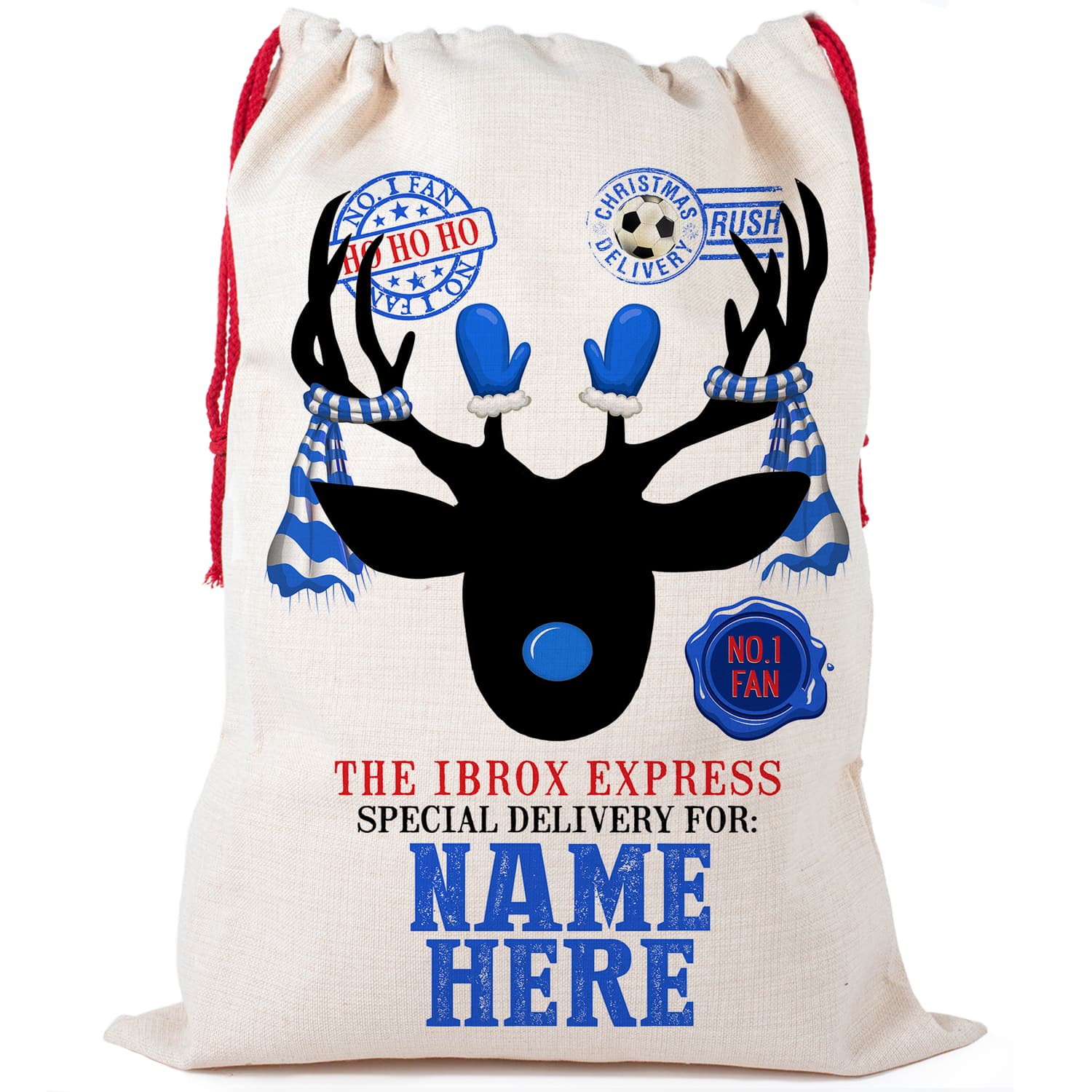 Personalised Glasgow Rangers Football Reindeer Christmas Sack RCS31