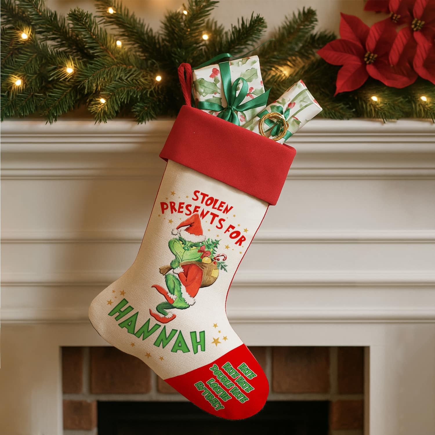 Personalised Grinch Christmas Stocking — great seasonal decor and perfect for holding festive treats!