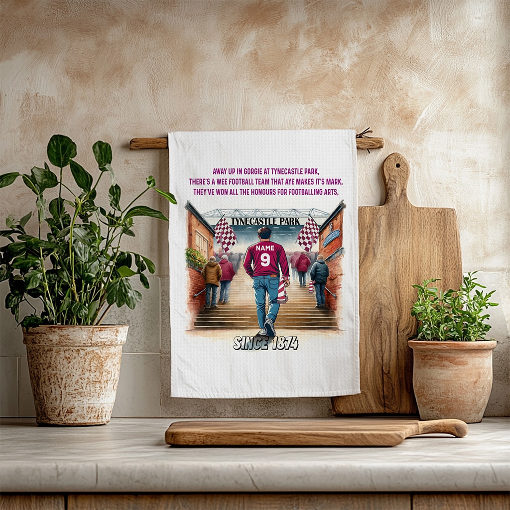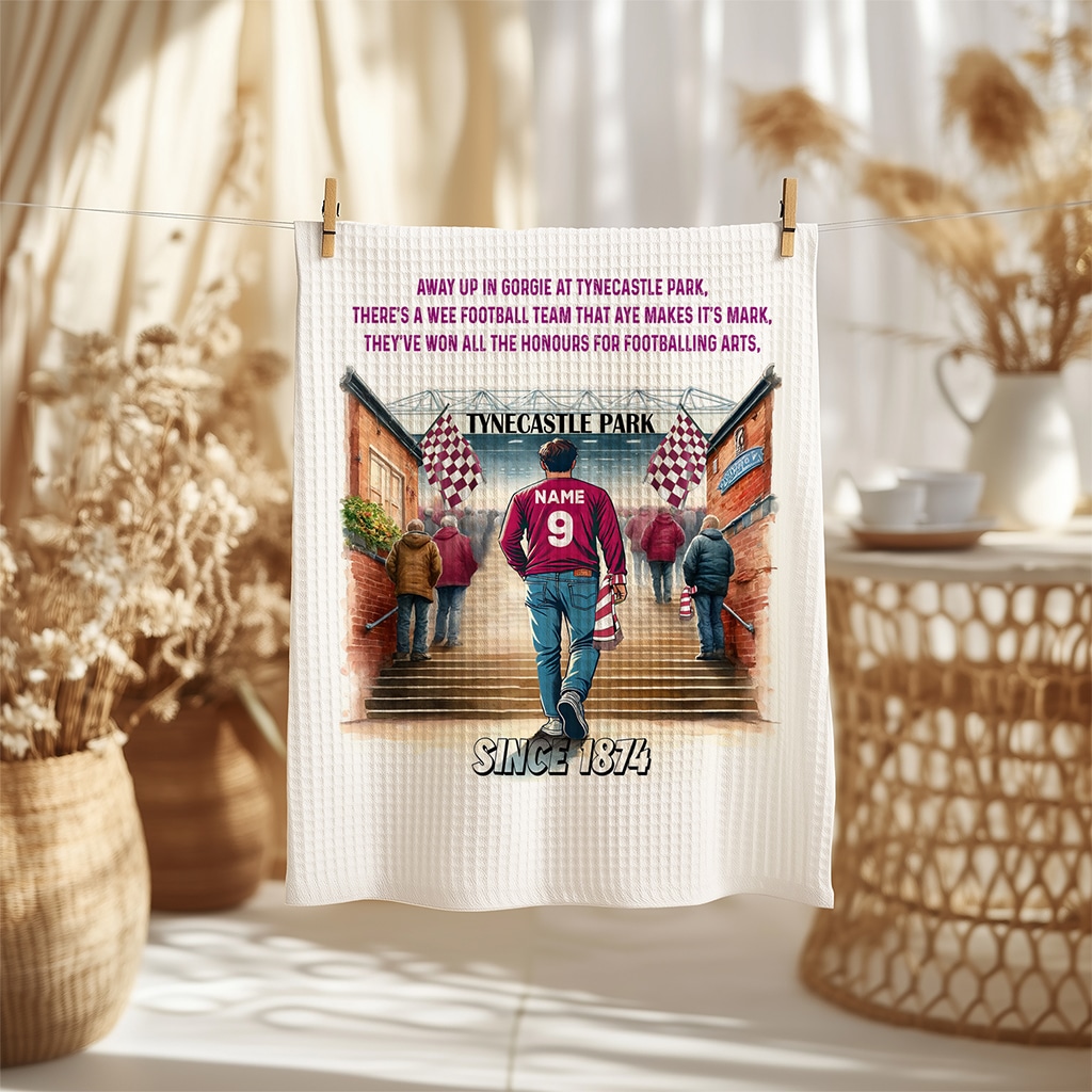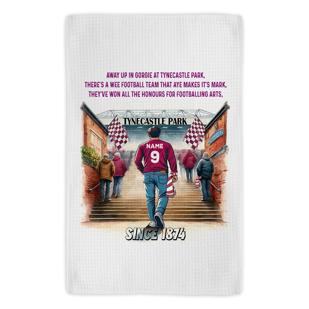 This Personalised Heart of Midlothian Football Stadium Kitchen Tea Towel is perfect for every football fan, custom personalised with a name and squad number.