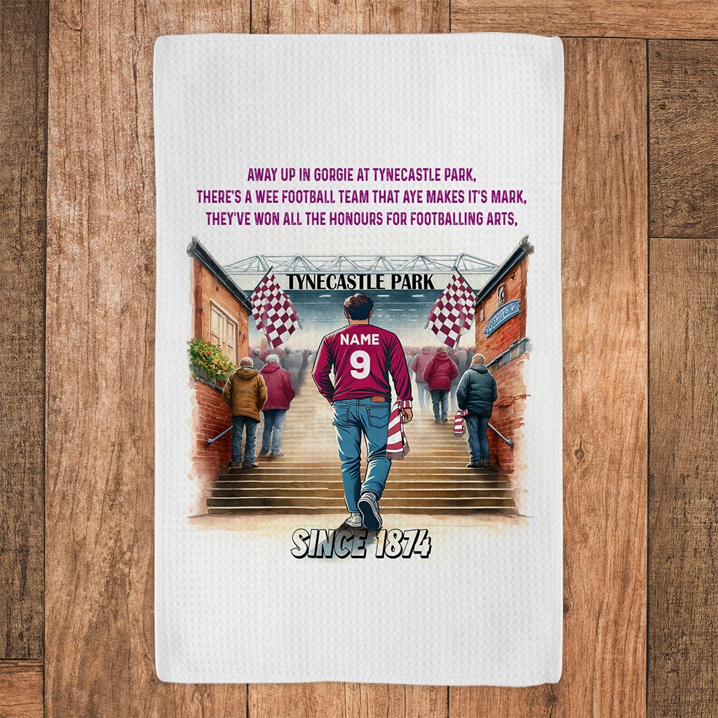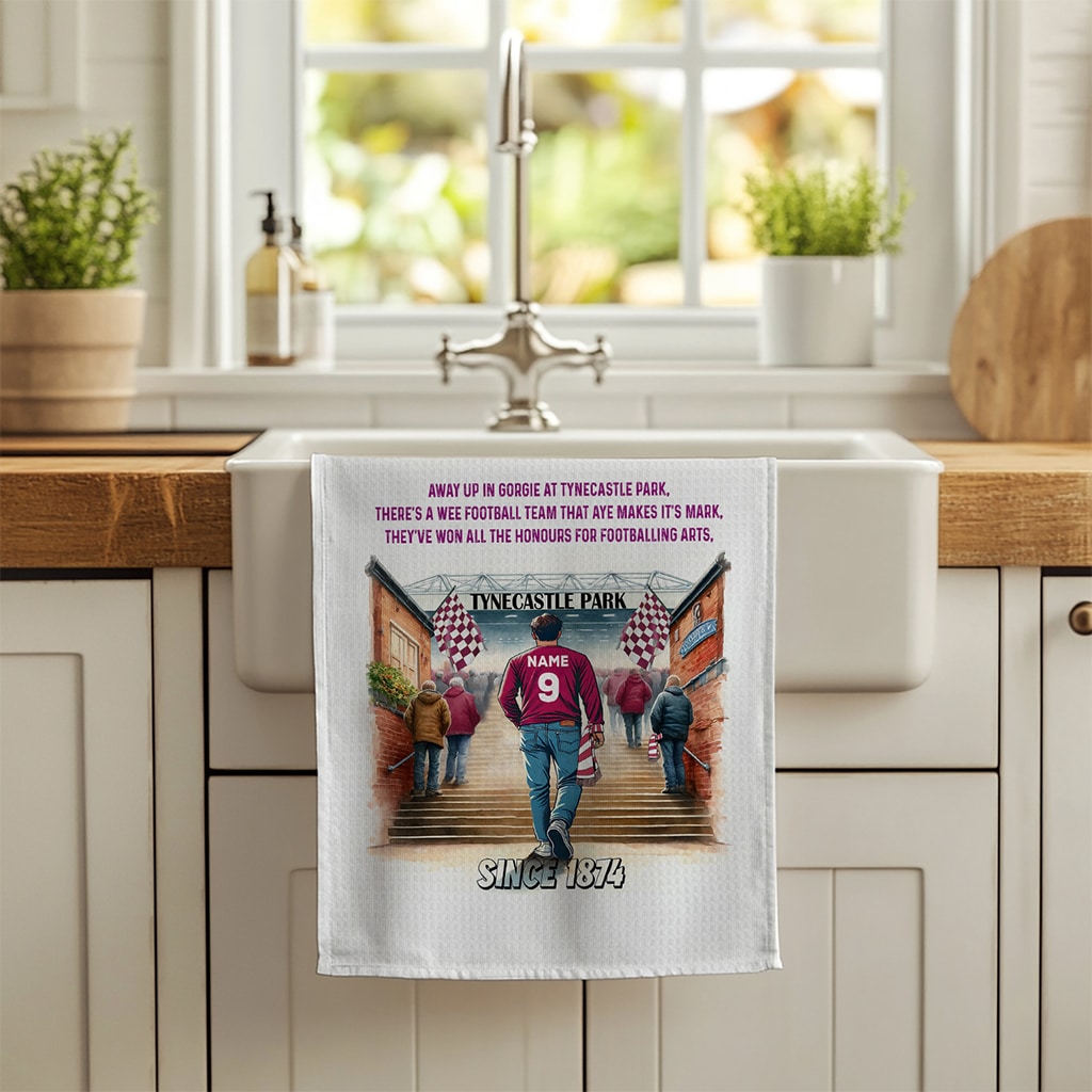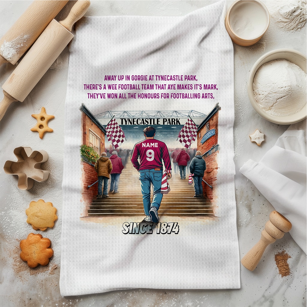This Personalised Heart of Midlothian Football Stadium Kitchen Tea Towel is perfect for every football fan, custom personalised with a name and squad number.