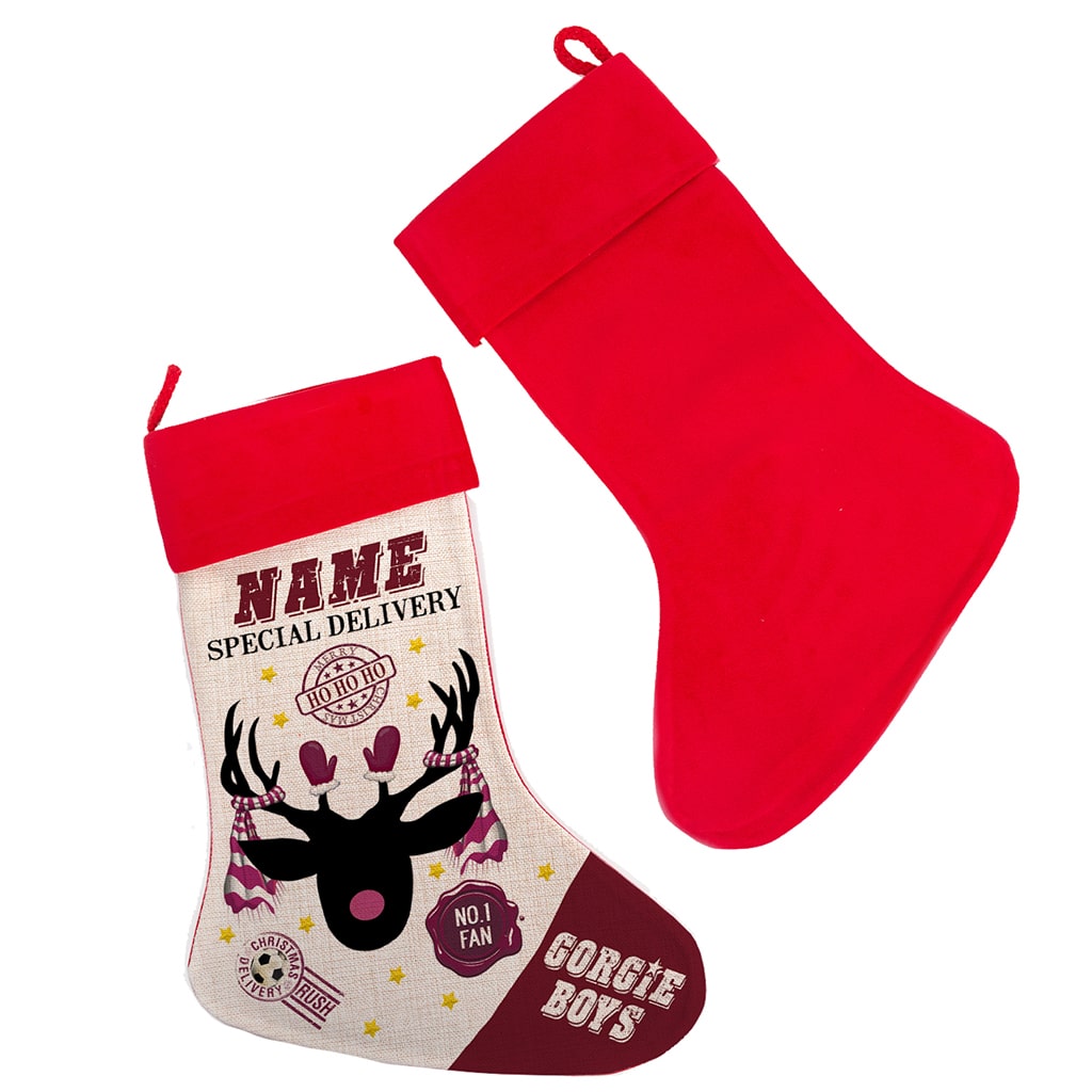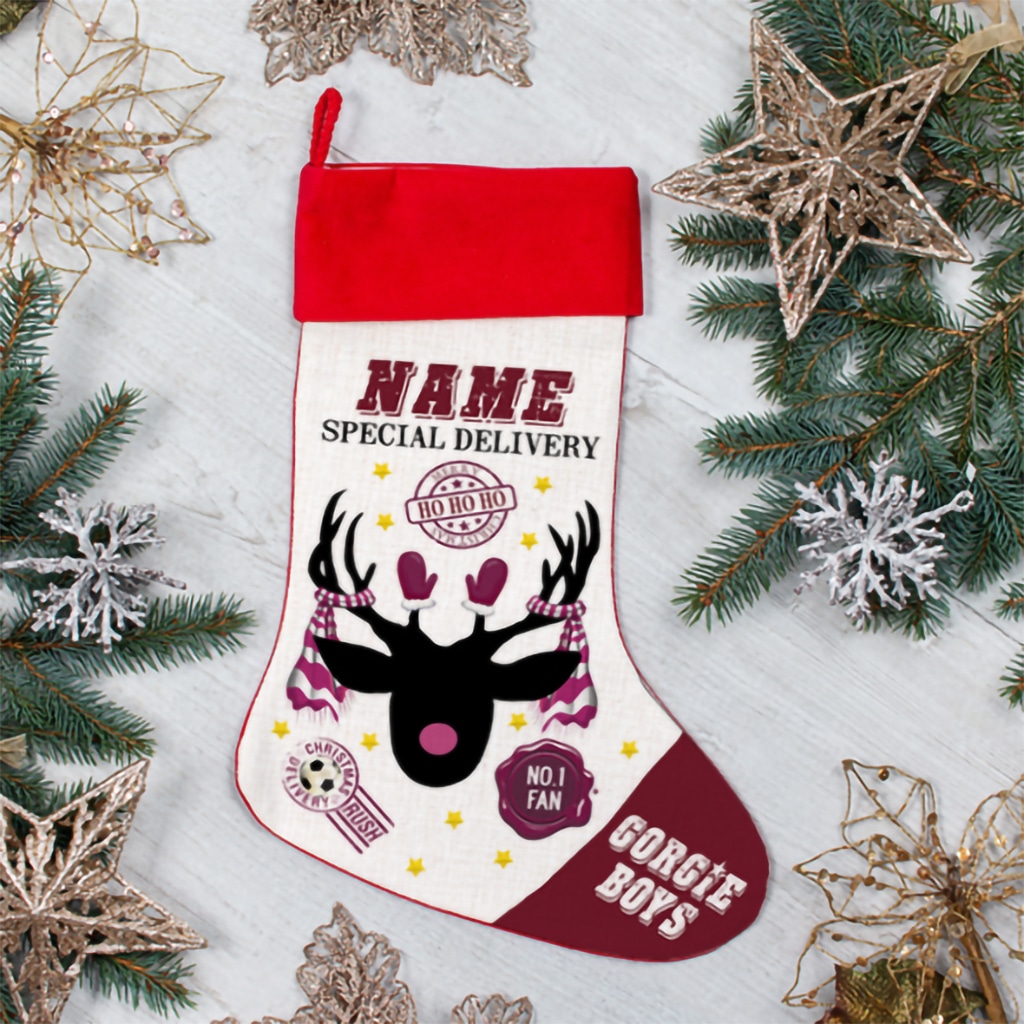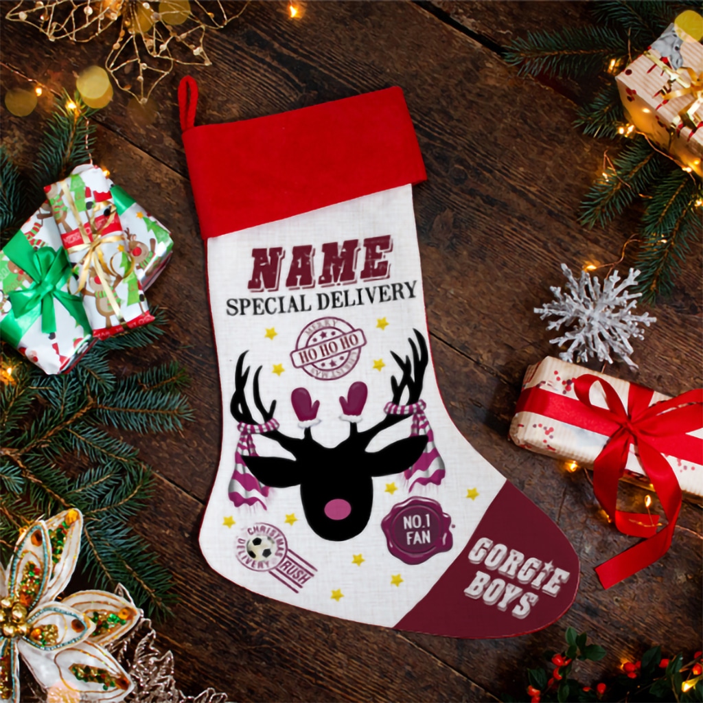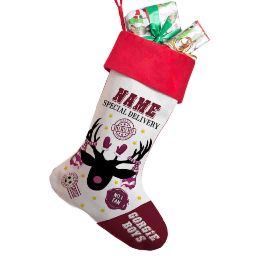 With a festive football reindeer in team colours, this stocking makes great seasonal decor for the home and is also perfect for holding treats and stocking filler presents!