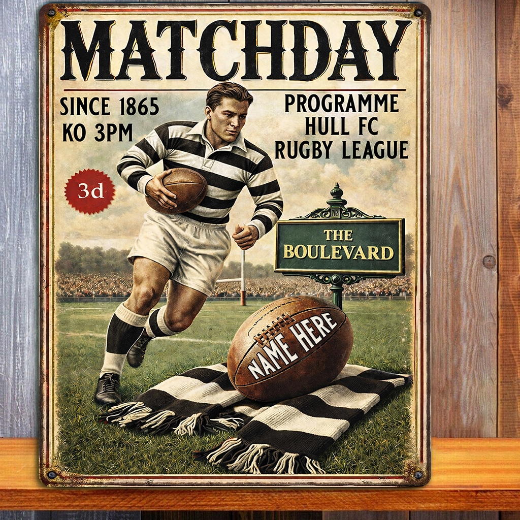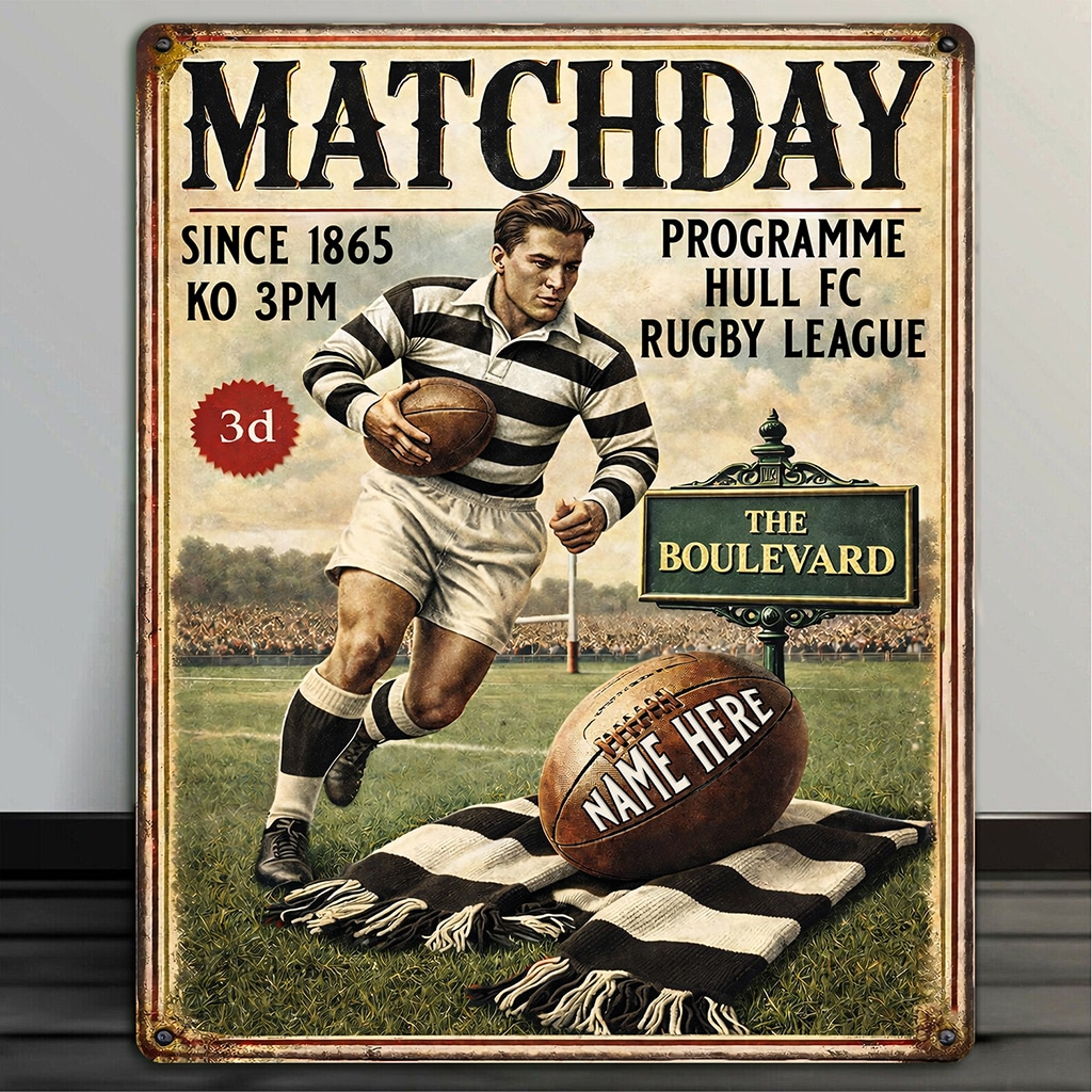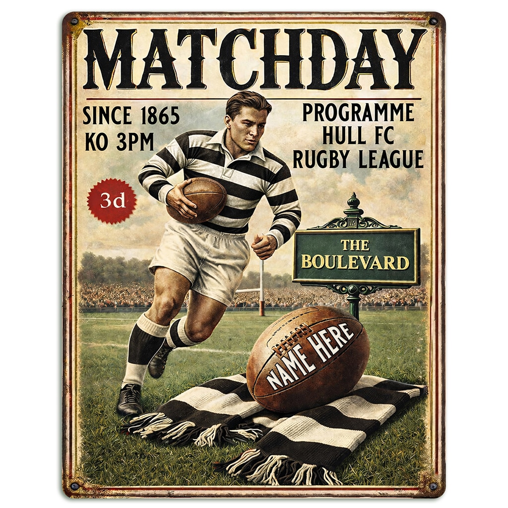 Personalised Hull FC Rugby League Metal Wall Sign is the perfect gift for any rugby fan.