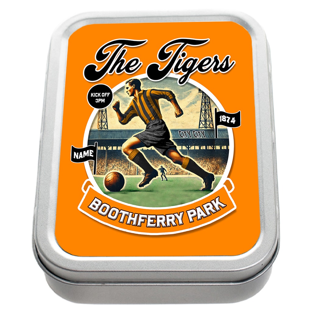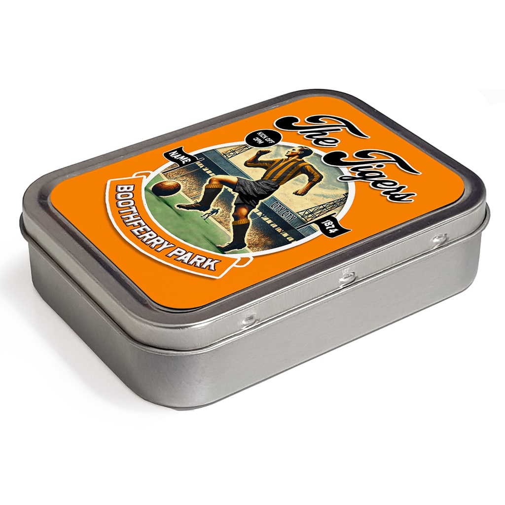 Personalised Hull Football Nostalgia Tobacco Tin, the ideal gift for any smoker.